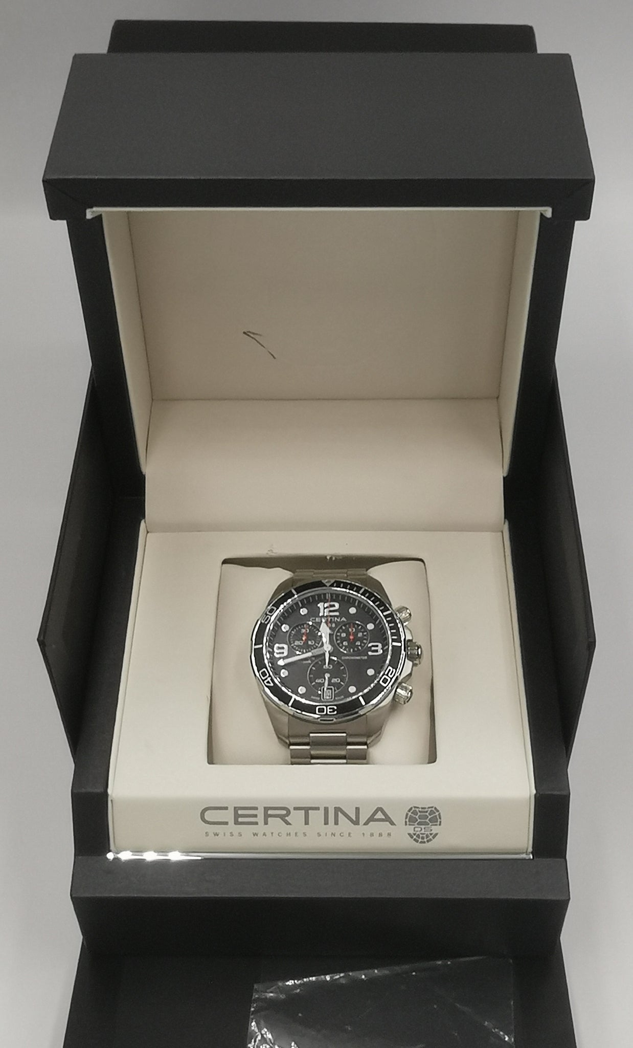 Certina DS Action Chronograph 43mm Quartz Men's Watch- Black Dial/Steel Bracelet - Boxed