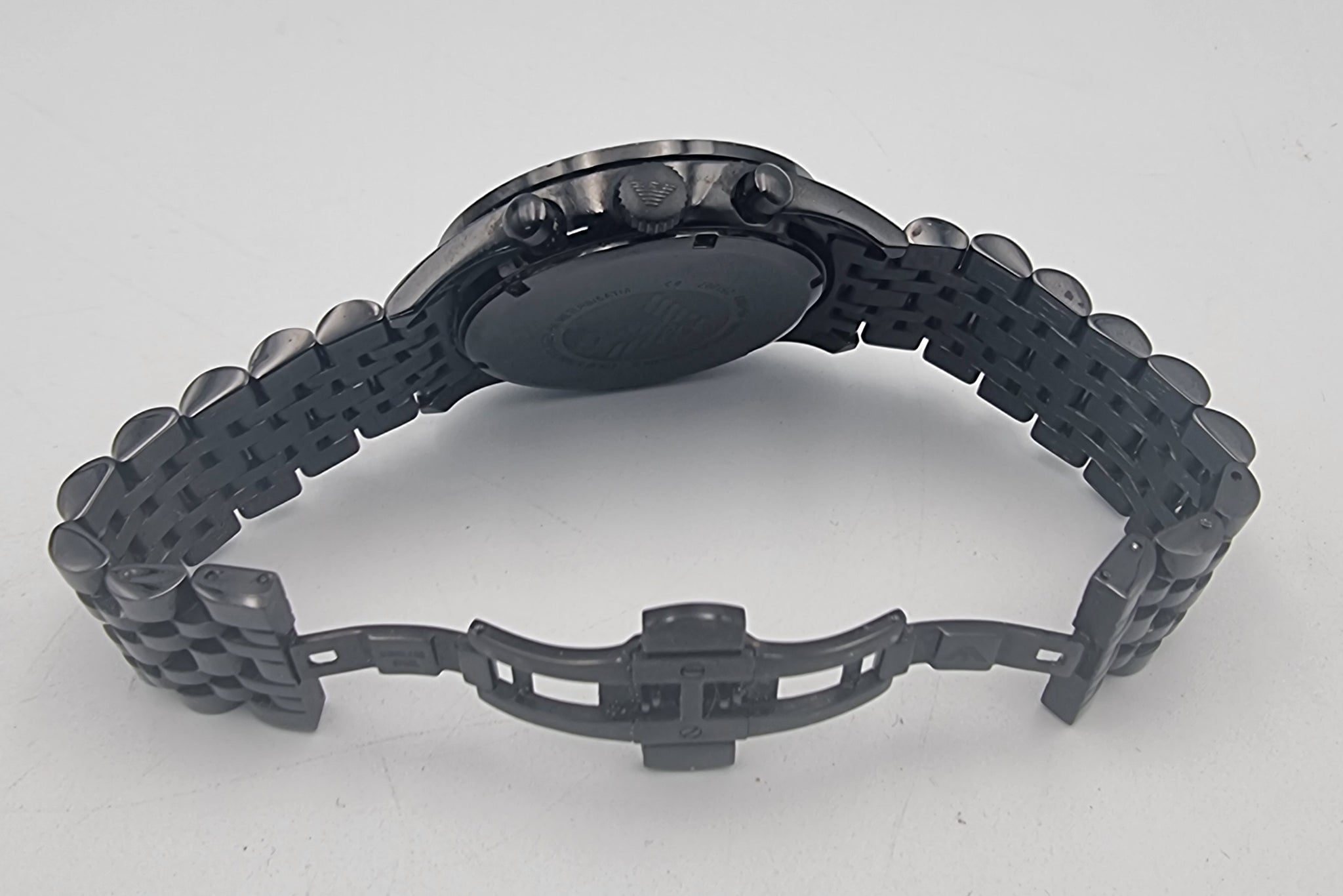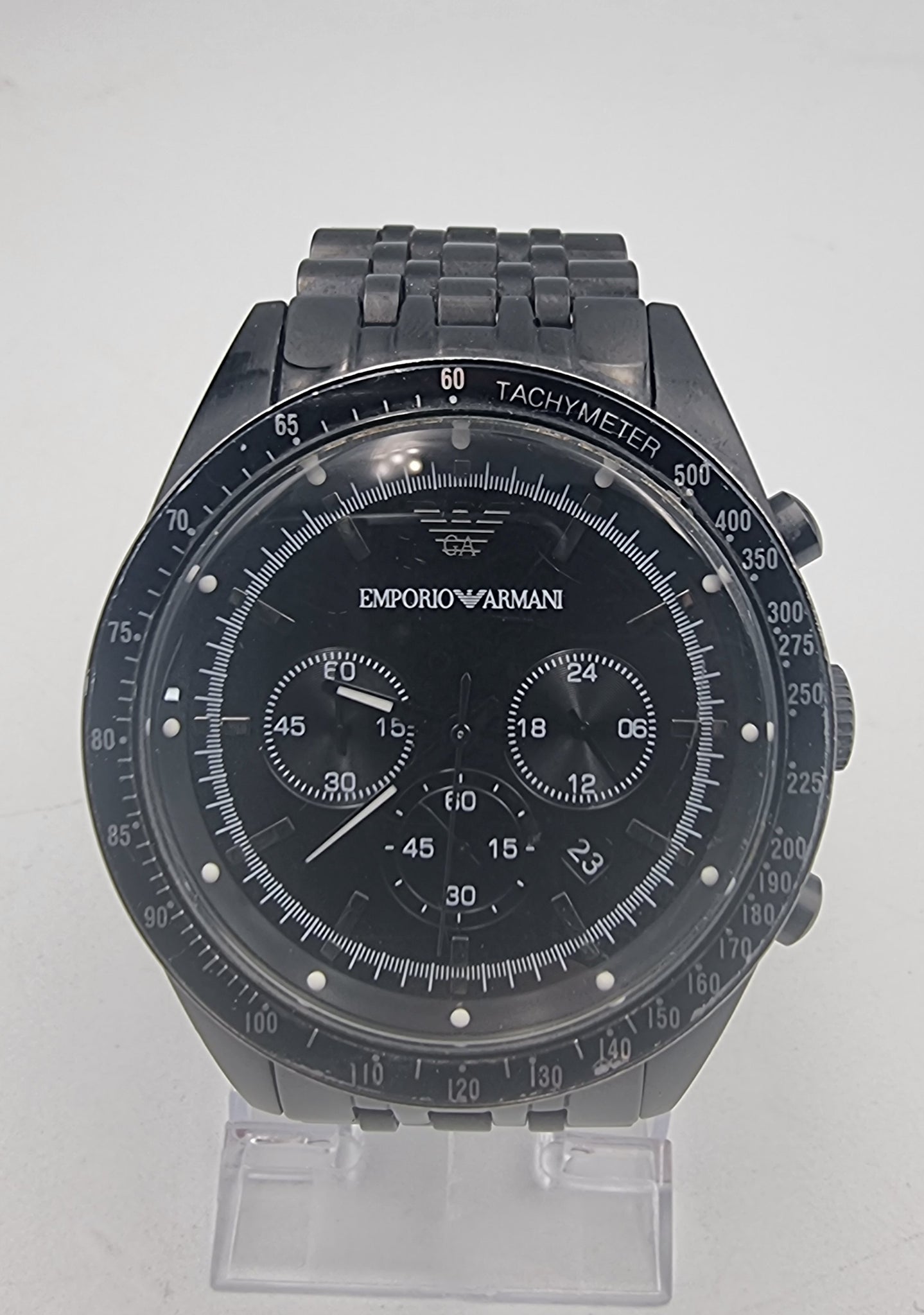 Emporio Armani AR5989 men's black chronograph watch with original box and papers