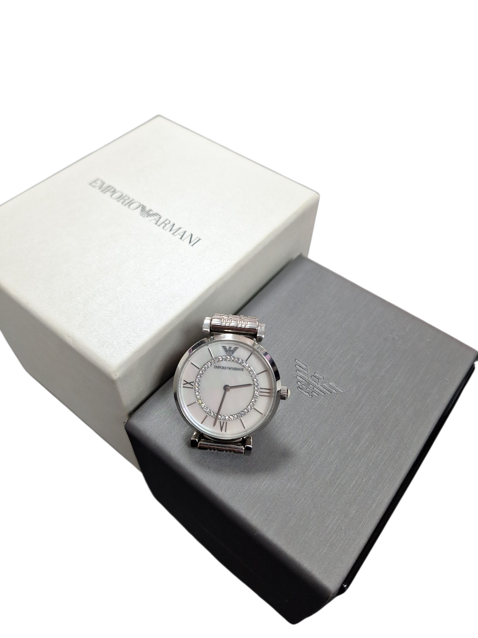 EMPRORIO ARMANI AR-1908 MOTHER OF PEARL CRYSTAL DIAL LADIES WATCH WITH STAINLESS STEEL STRAP