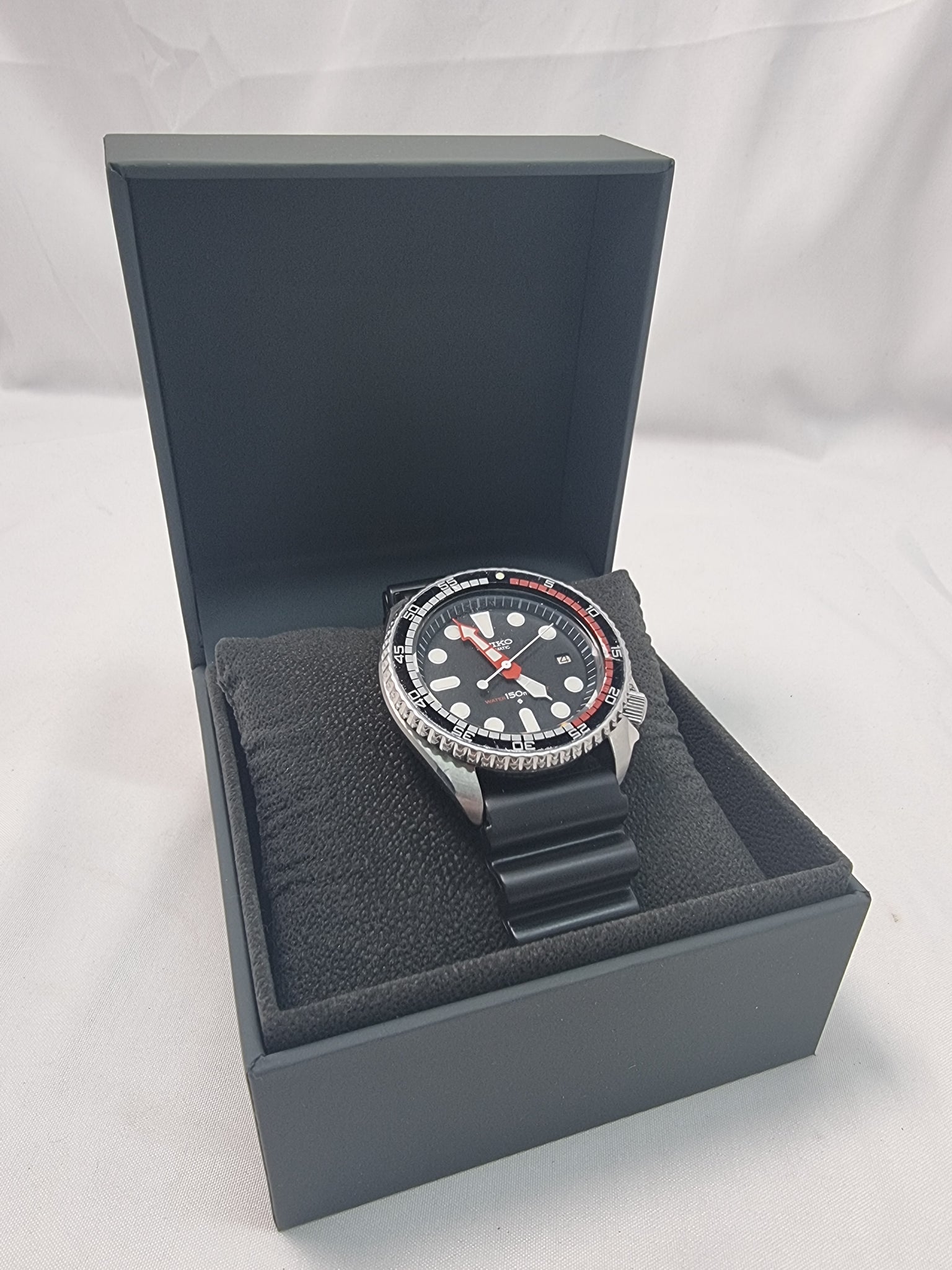 Mens Seiko Automatic Divers Watch 411551 with black rubber divers strap boxed