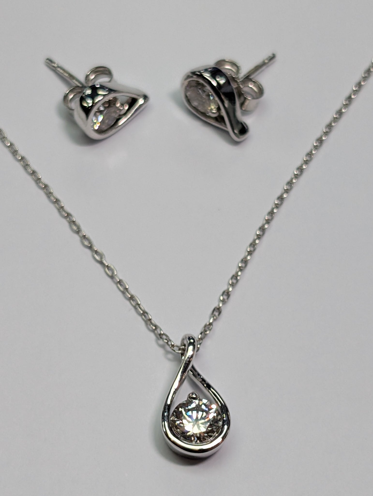 Pandora 14ct White Gold Lab Grown Diamond necklace/Pendant & Earrings