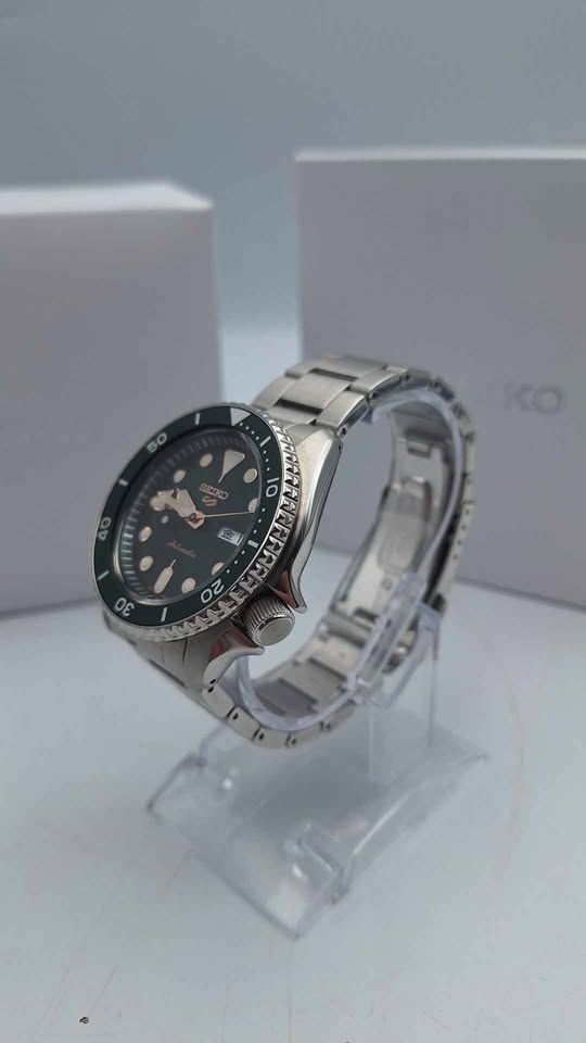 Add a bold and reliable timepiece to your collection with the Seiko 5 Sports Automatic 4R36-07G0. Known for its durability and iconic design, this watch features a striking green dial paired with a robust stainless steel case and bracelet, delivering a classic diver-inspired look. Powered by Seiko’s trusted 4R36 automatic movement, it offers both self-winding and manual winding capabilities, along with a day-date display for everyday practicality. The watch is designed for reliability and comfort, making it perfect for daily wear or casual occasions. With its sporty aesthetic, luminous hands and markers, and solid build quality, this Seiko 5 Sports model is a great choice for watch enthusiasts and newcomers alike. Key Features: Seiko 5 Sports automatic movement (Calibre 4R36) Self-winding with manual winding capability Day and date display Eye-catching green dial Stainless steel case and bracelet Diver-style design with rotating bezel look Luminous hands and hour markers Durable Hardlex crystal Exhibition case back