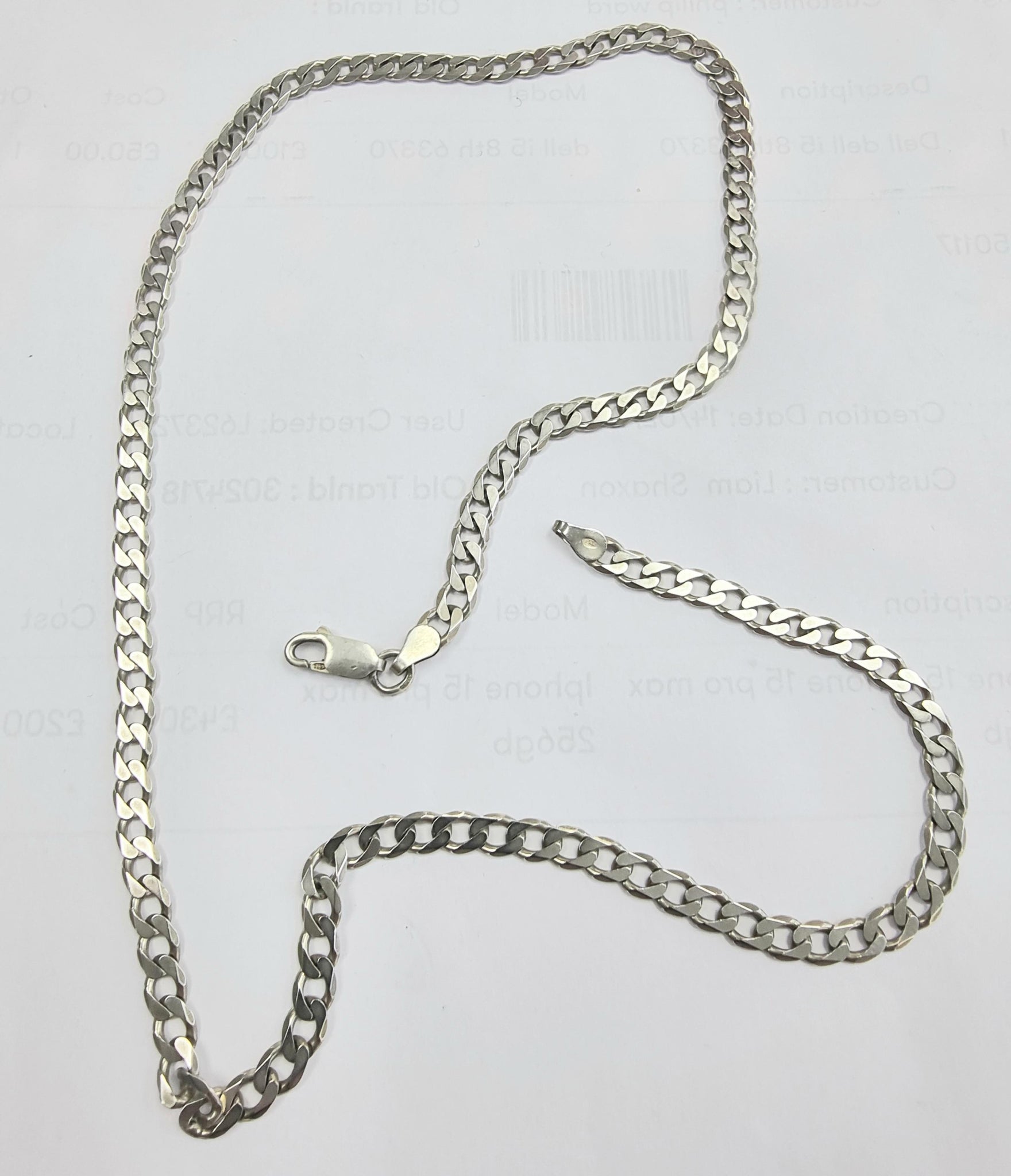 A nice silver flat chain 20" weighing 14.32 grams