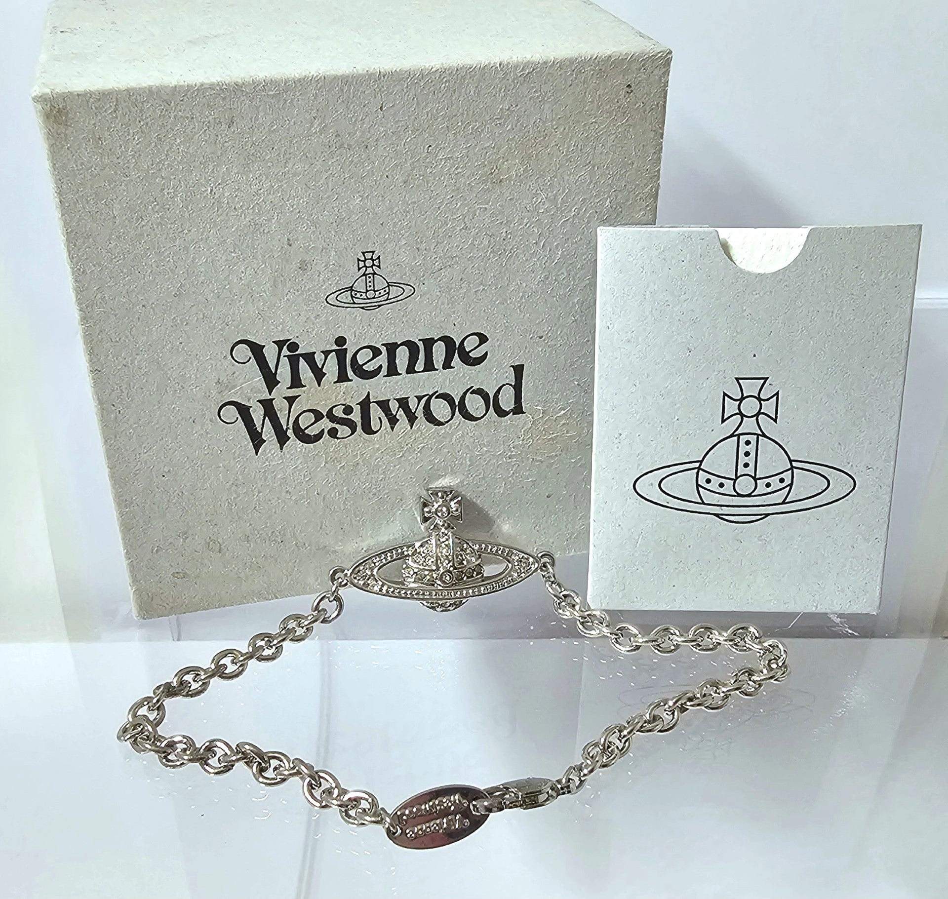 This Vivienne Westwood bracelet is crafted from silver-tone plated brass. It features an embellished brand charm, a polished finish, and an extendable length with lobster-clasp fastening. The chain length is 16cm and the total bracelet length is 21cm. It comes presented in a box.