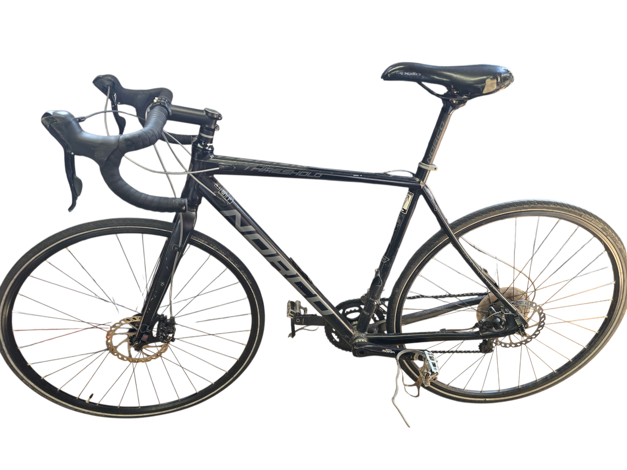 An aluminum frame cyclocross bike with mid-range components and hayes mechanical disc brakes.