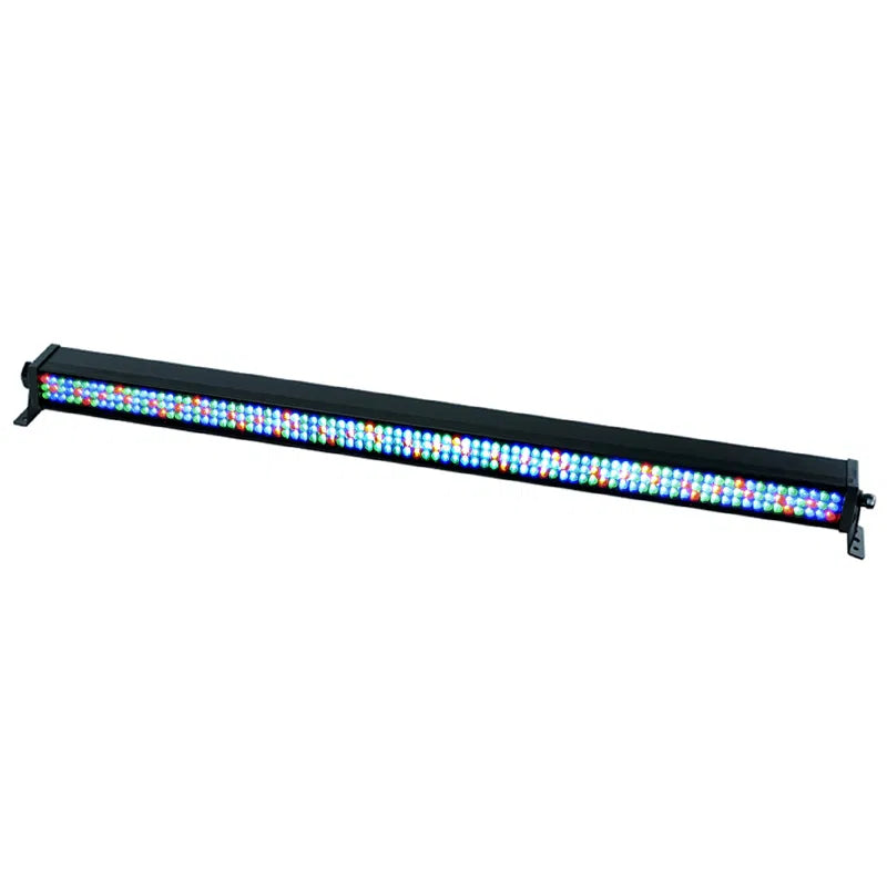 252 x 10mm LEDs (R: 108, G: 72, B: 72) Beam angle: 40° DMX channels: 3 or 9 selectable Sound active, auto and master/slave modes 0-100% dimming and variable strobe Bracket allows for multiple rigging or floor standing applications 4 push button menu with LED display IEC power input/output 3-Pin XLR input/output