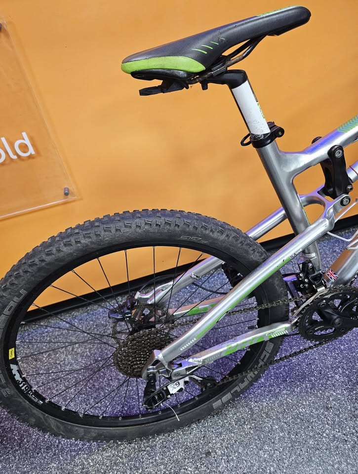 DESCRIPTION FRAME: Superlight X9 Triple Butted Alloy with Smooth Welds and 142mm Thru Axle, 130mm Travel FORK: RockShox Revelation RL with Lockout, Tapered Steerer, 15mm Maxle - 130mm REAR SHOCK: RockShox Monarch RT, 130mm Travel GEARING: SRAM X9 BRAKES: Avid Elixir 7 Trail Hydraulic Disc Brake