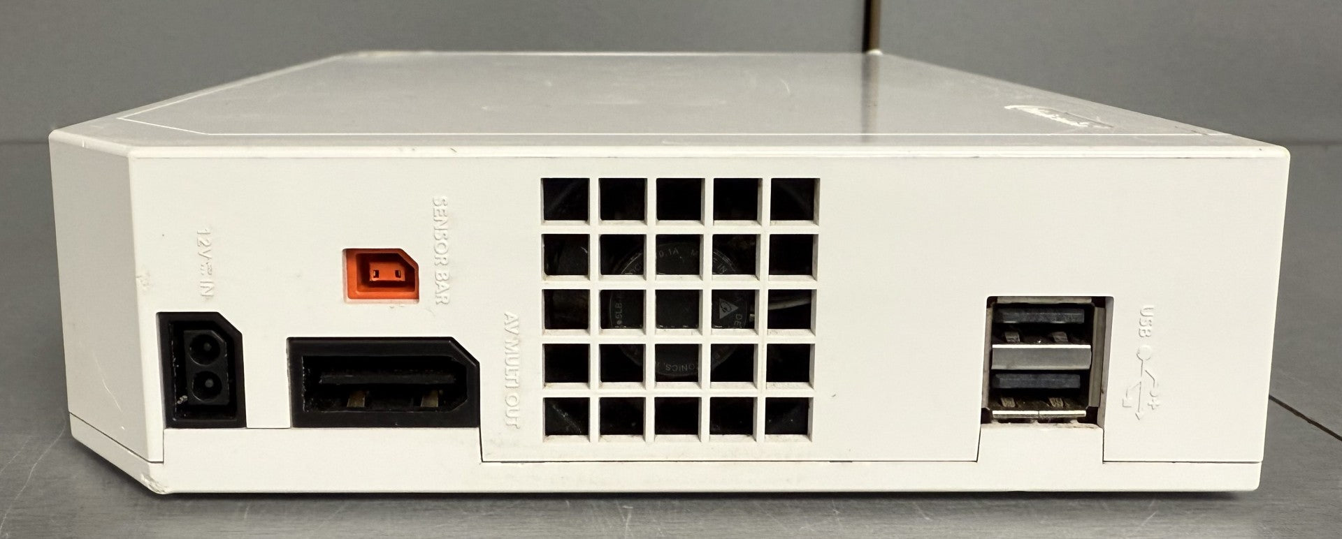 Used condition, all working. Come's unboxed with power supply, AV cable, sensor bar and x2 Wii remotes with x1 nunchuk. Does have marks and scratches across the system.