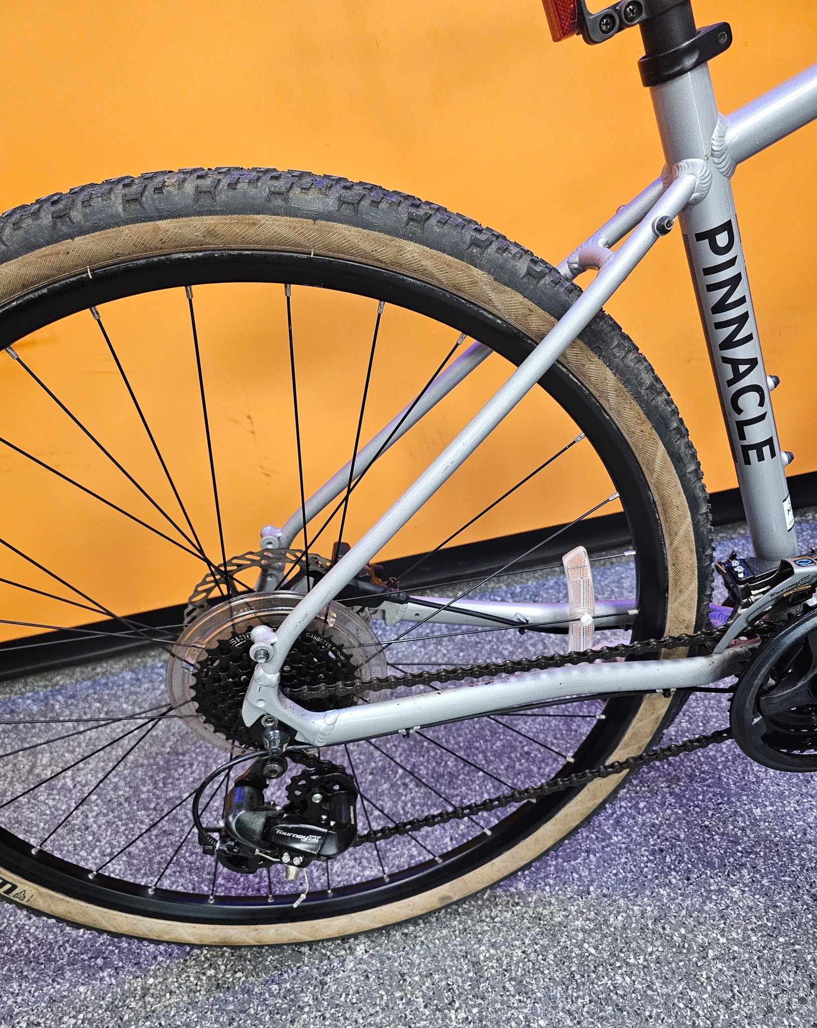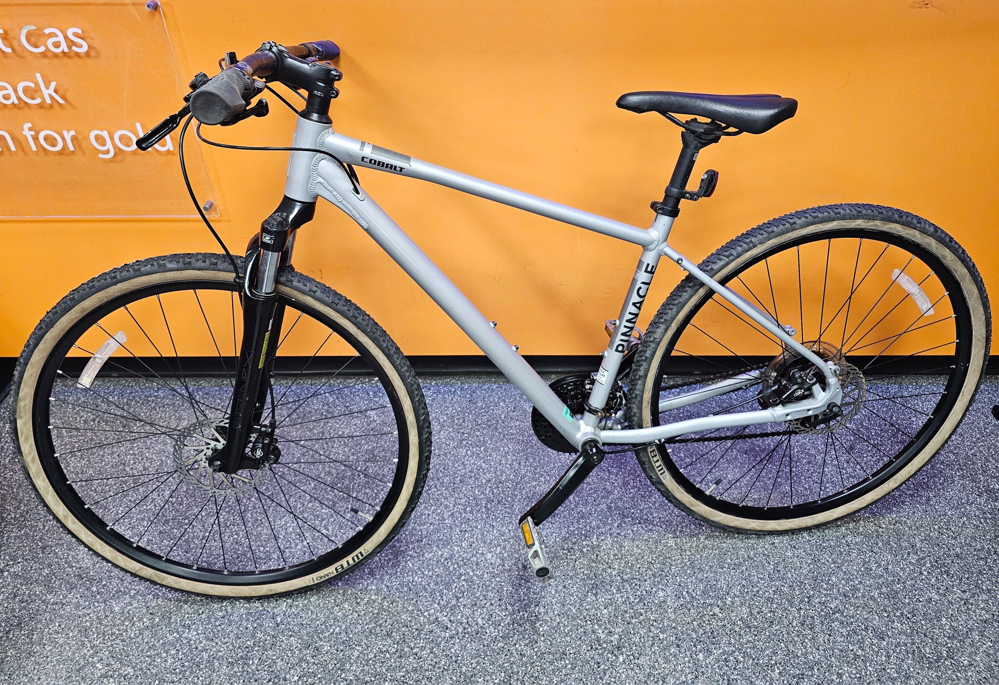 Pinnacle Cobalt 1 Hybrid With its upright and comfortable riding position, versatile and grippy 40mm wide tyres, adjustable suspension forks and pannier rack mounts on all models, the Pinnacle Cobalt is a master of covering ground in comfort and control.Whether you're riding on roads, towpaths or woodland short-cuts, the Pinnacle Cobalt handles it all with ease. If a mountain bike seems too over-built or heavy and a road bike too limiting, the do-it-all Cobalt could be what you're looking for. lightweight and durable 6061 heat treated aluminium frame. SR Suntour NEX suspension fork with 63mm of travel for improved grip and comfort. 24 speed Shimano Tourney TX drivetrain offers a wide range of gears whilst being durable and easy to maintain. Shimano Altus shifters offer smooth and reliable gear changes. Clarks Clout hydraulic disc brakes offer powerful braking in all weathers. 700x40C WTB Nano Comp tyres offer a excellent grip on a variety of surfaces in all weathers. Frame: 6061 heat treated aluminium. Fork: 63mm travel SR Suntour SF20-NEX -RS 700C w/preload adjuster. Front Derailleur: Shimano FD-TX800-TS6. Rear Derailleur: Shimano RD-TX800. Shifters: Shimano Altus SL-M315. Speed: 24. Crankset: 48T/38T/28T alloy crankset w/ 73-122mm bottom bracket. Cassette: 11-32T 8 speed cassette. Chain: KMC Z-8.3 8 speed chain. Brakes: Clarks Cloud hydraulic disc brakes. Tyres: WTB Nano Comp 700x40C. Pedals: Included. Chainset Type: 3x. Suspension Type: Hardtail. Frame Material: Aluminium. Number of Gears: 24 Speed. Frame Style: Traditional. Brake Type: Hydraulic Disc. Discipline: Hybrid. Pedals: Included. Seat Clamp: Fixed. Seatpost: Aluminium. Axle Type: Quick Release. Bottom Bracket: Square Taper.
