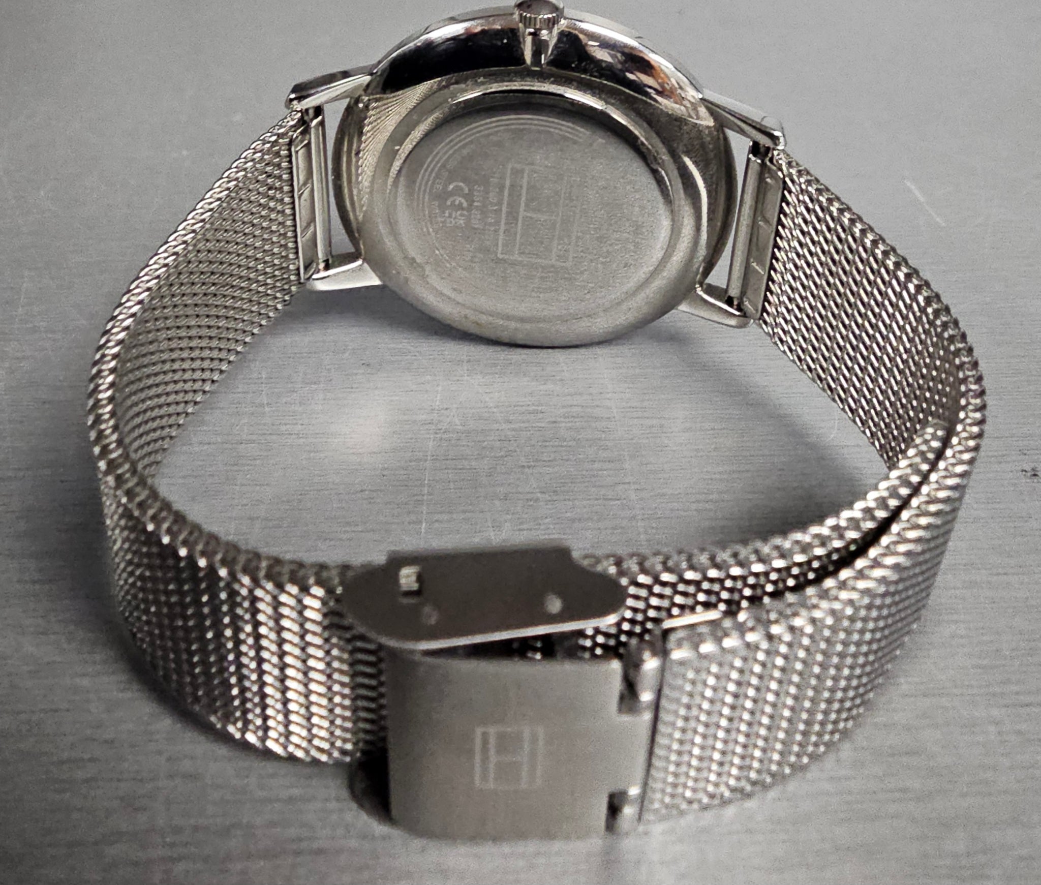 Silver-tone stainless steel case and bracelet. Fixed silver-tone stainless steel bezel. Blush dial with silver-tone hands and index hour markers. Dial Type: Analog. Quartz movement. Scratch resistant mineral crystal. Pull / push crown. Solid case back. Round case shape, case size: 40.5 mm. Deployment with push button release clasp. Water resistant at 30 meters / 100 feet. Functions: hour, minute. Tommy Hilfiger Alex Quartz Blush Dial Ladies Watch 1782244.