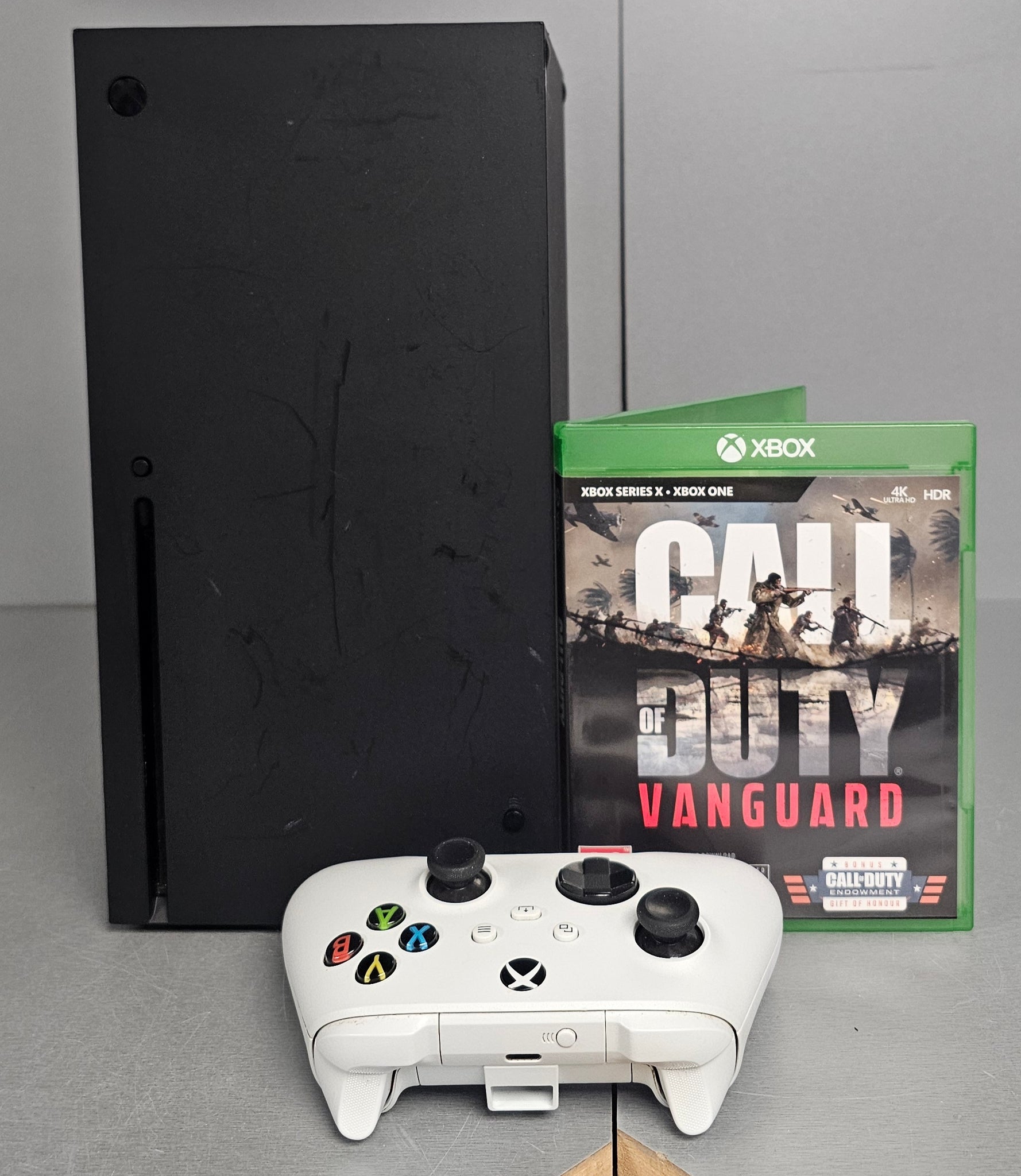 Product Description Optimised for Series X Games built with the Xbox Series X development kit showcase significantly reduced load times and stunning visuals at up to 120 FPS. Game on From future adventures, to current obsessions, to classic titles, thousands of favourites across four generations of Xbox look and play Xbox Series X. 12 Tflops of Power The 12 teraflops of processing power housed in the system on a chip (SOC) work with AMD's Zen 2 and RDNA 2 architectures to result and demand a closer look. Looks Better. Plays Better Equipped with AMD's Zen 2 and RDNA 2 architectures, DirectX ray tracing delivers true-to-life lighting, shadows and accurate reflections to create dynamic, living. Listen, You'Re Being Surrounded 3D Spatial Audio is the next evolution in audio technology, using advanced algorithms to create immersive lifelike worlds that put you at the centre of your experience. True 4K gaming The Xbox Series X delivers sensationally smooth frame rates of up to 120FPS with the visual pop of HDR. Immerse yourself with sharper characters, bright worlds and impossible details with true-to-life 4K. GO, GO, GO Sip quick. Games load significantly fast with the custom SSD in the Xbox Series X. Change the game. With Quick Resume, you can seamlessly switch between multiple different titles and resume instantly from where you left off. Fine Tuned Performance The Xbox Wireless Controller brings elegant design, refined comfort and instant sharing to a familiar favourite. Get A Grip Textured triggers and bumpers hold tight to keep you from slipping. You Win Show off. Tap the share button to eternalise your conquest. Full Circle Updated in every direction. The hybrid D-pad lets you crush combos without crossing fingers. Designed From The Inside Out The sleek monolithic design of Xbox Series X is the result of combining hardware and software innovations with intentional engineering to achieve the zenith of speed and performance. Air-Flow Channels The Xbox Parallel Cooling Architecture is built with three air flow channels that evenly distribute the temperatures generated by the advanced internal components, keeping the console cool and quiet. Split Motherboard A split motherboard keeps the console’s internals evenly temperature controlled allowing for an even high output of power. Heat-Sink A heat-sink chassis is a different, non-electronic component that merges parallel cooling with design to increase the reliability of performance. Vapour Chamber The vapour chamber in the Xbox Series X enables an even spread of temperatures within the core. Whisper-Quiet Fan A vertical airflow system keeps the console running smoothly and cooling quietly.