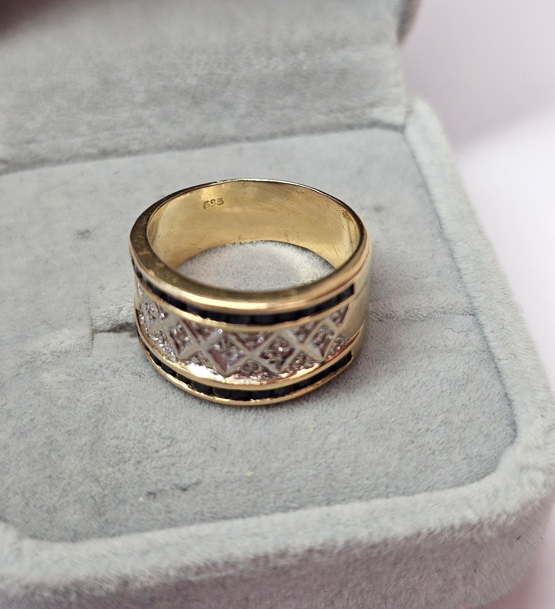 14 ct ring with diamonds. With a weight of 6.1g and is a size N1/2.