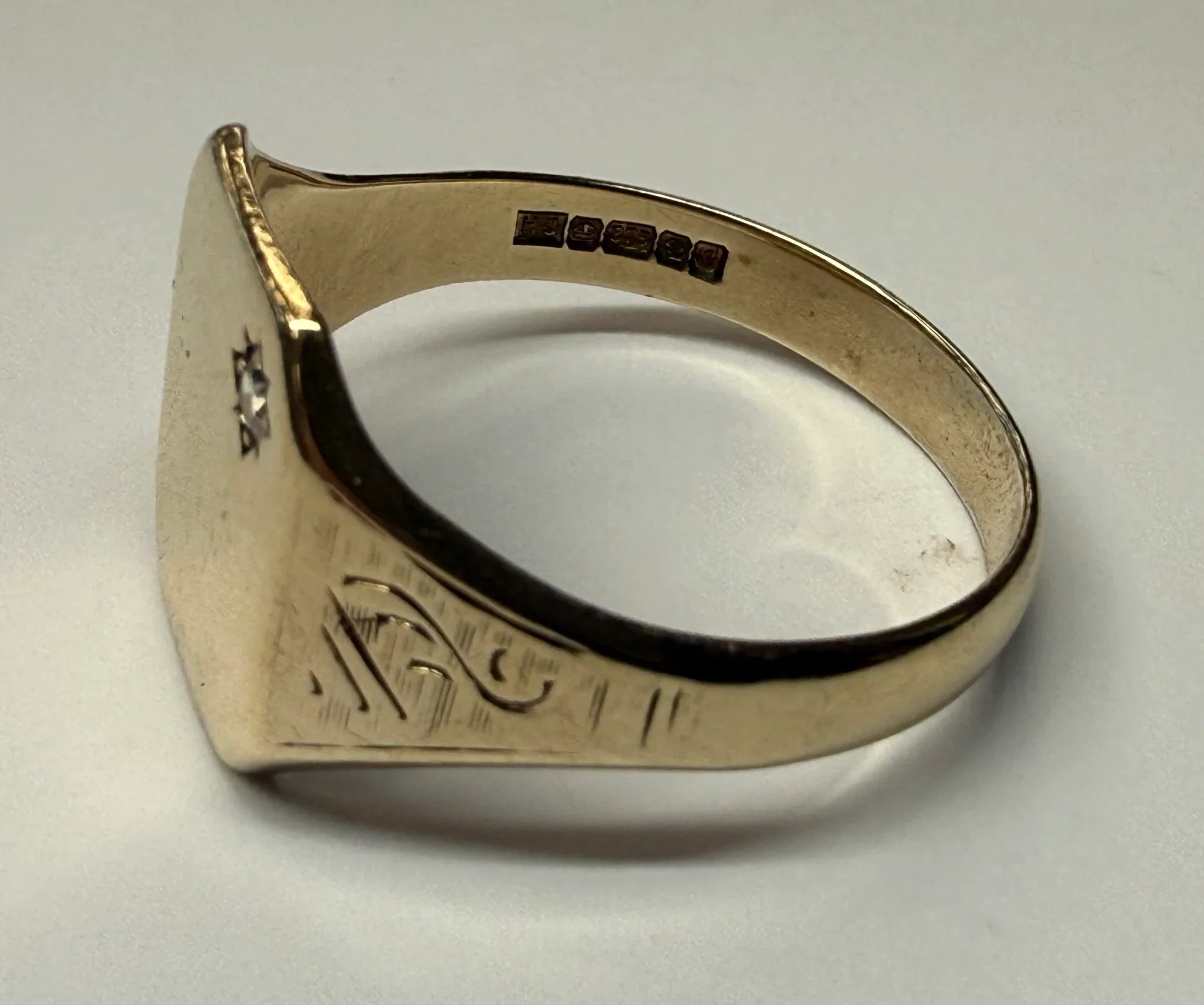 A stunning 9ct gold signet ring, size V and weighs 4.3 grams in good condition .