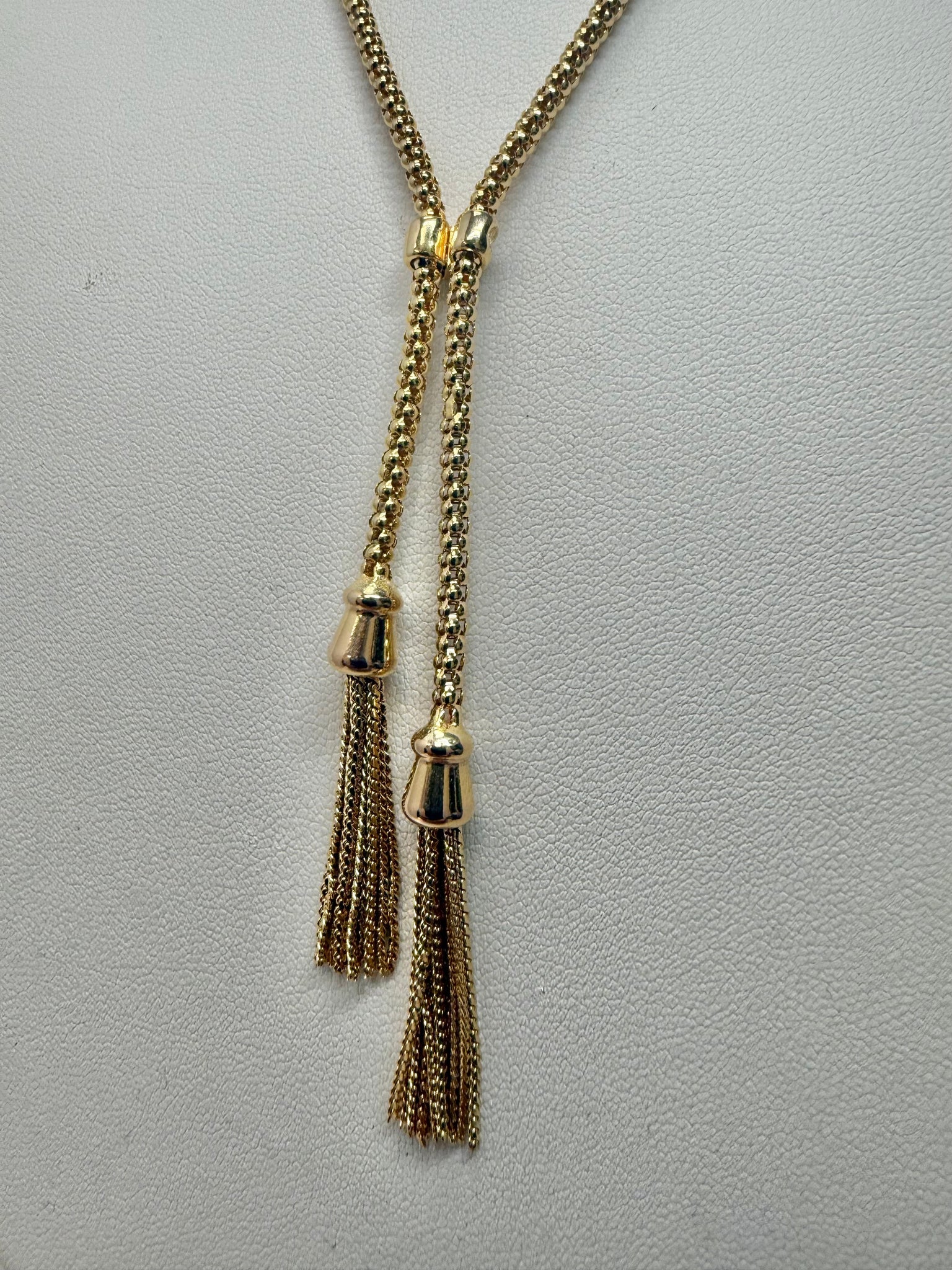 This beautiful 9ct gold tassle necklace is 17" and weighs 11.5 grams