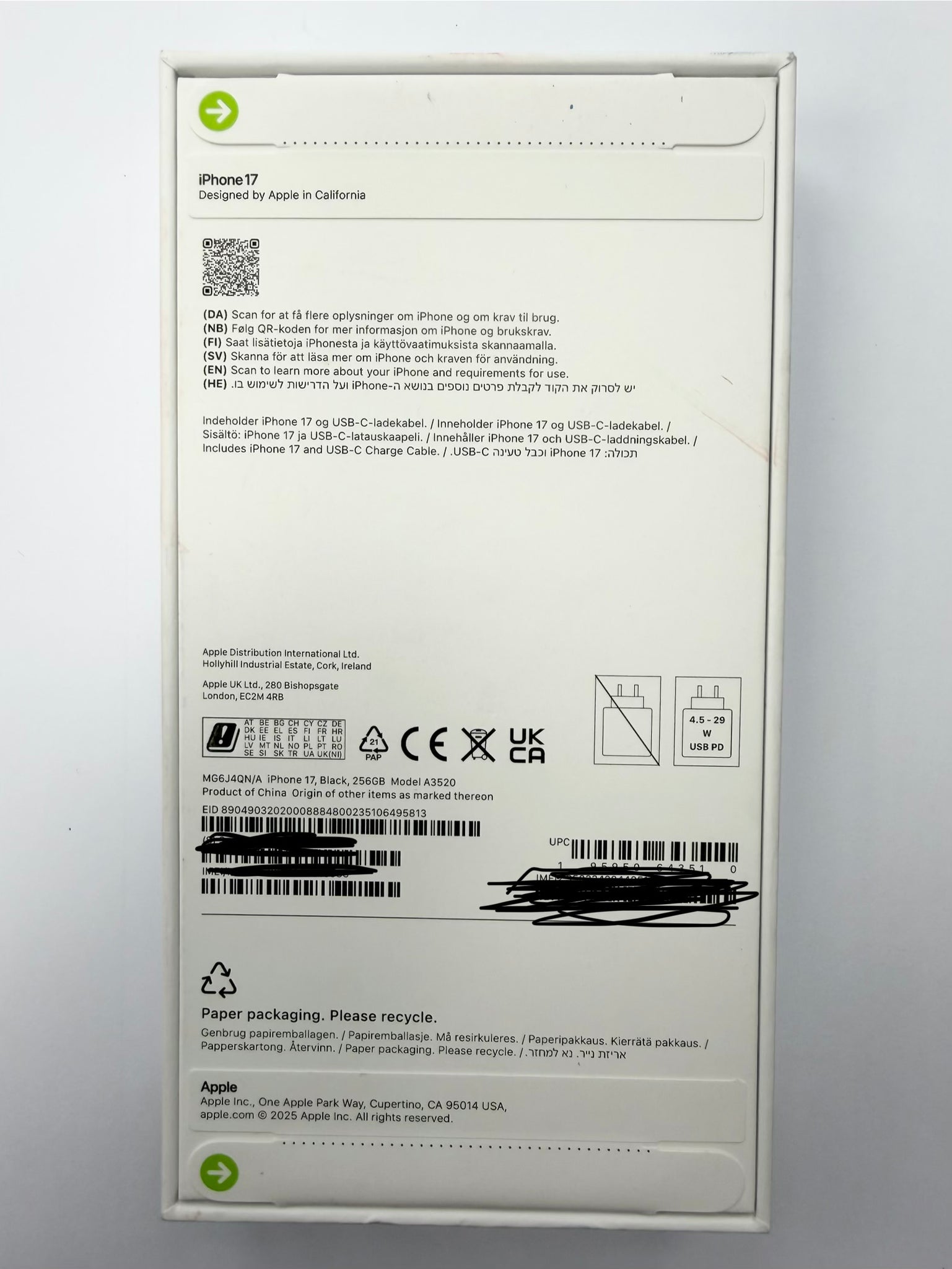 Brand new still sealed Apple iPhone 17, 256gb storage, black. Full Apple warranty starts when you switch the phone on.