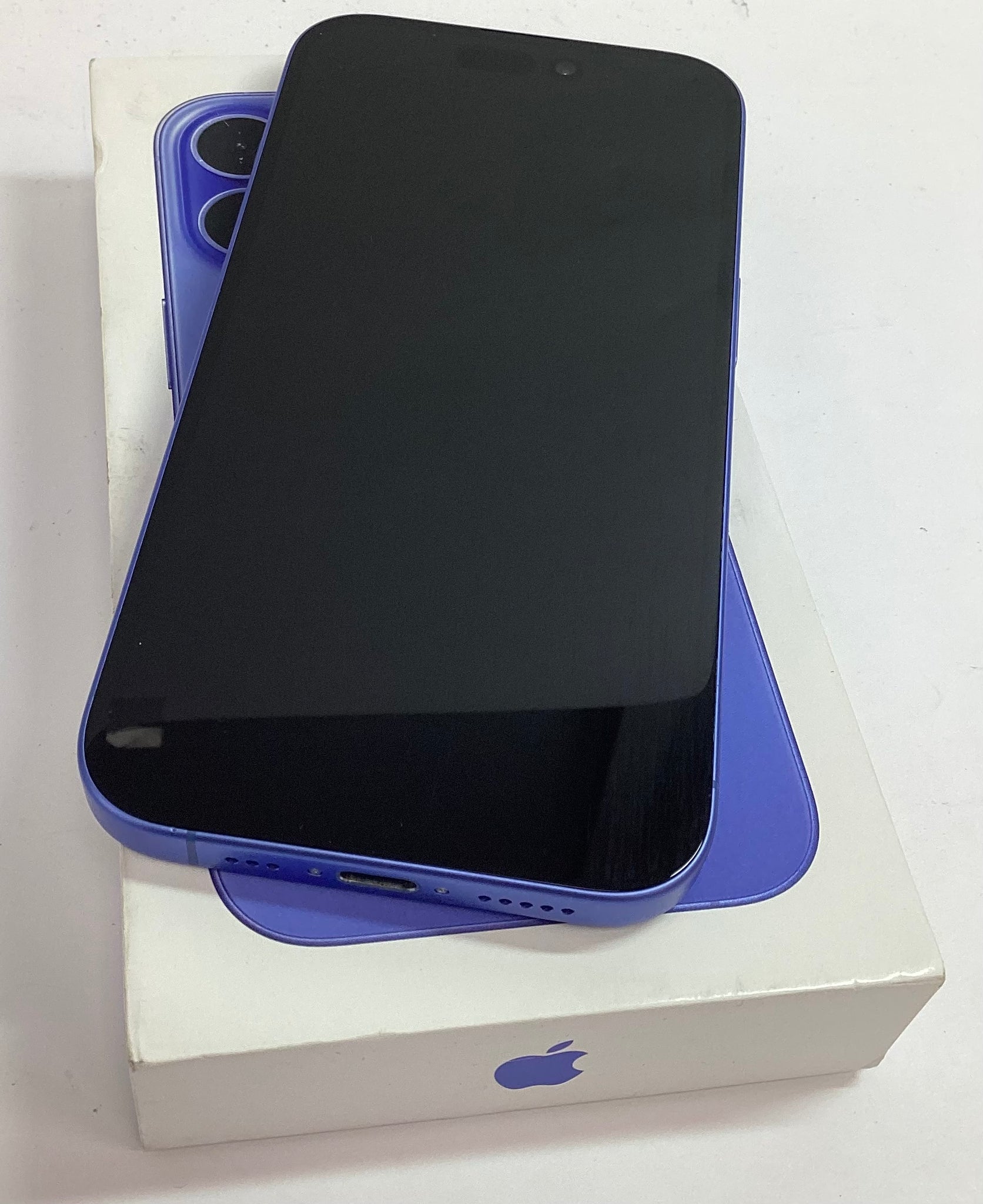 Apple iPhone 16 in ultramarine, 128gb storage, unlocked to any network. This phone has 100% battery health with 17 cycle count