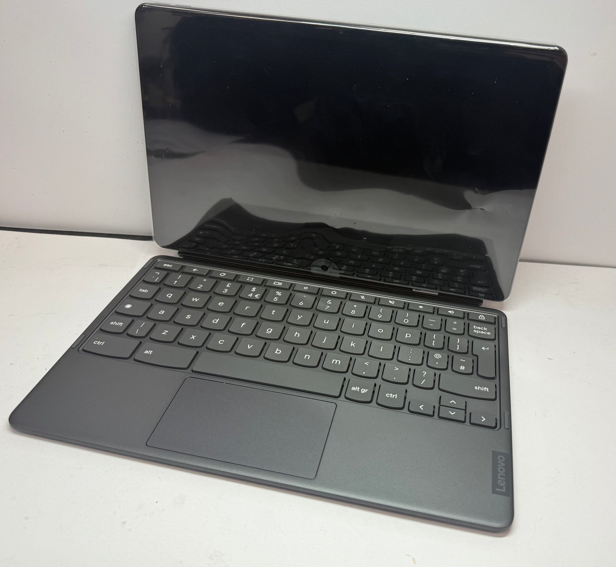 Very good condition, comes with the box, still has the plastic on the screen, use as a tablet or a mini chromebook. Fully tested and factory reset