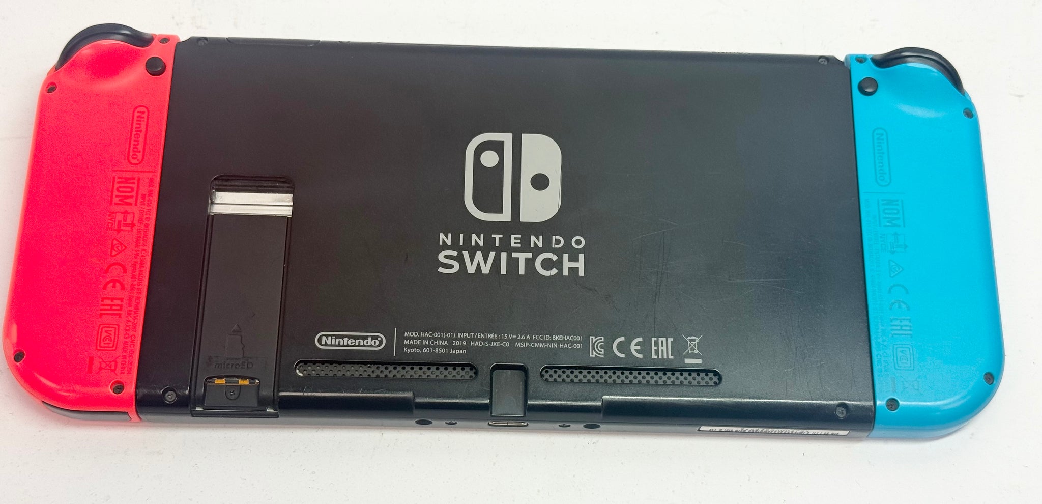 Nintendo Switch is fully working, comes with outter box, stand is missing and it does have cosmetic wear however does not affect play