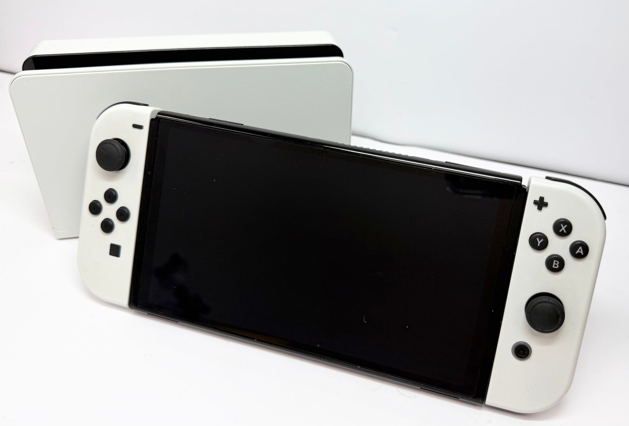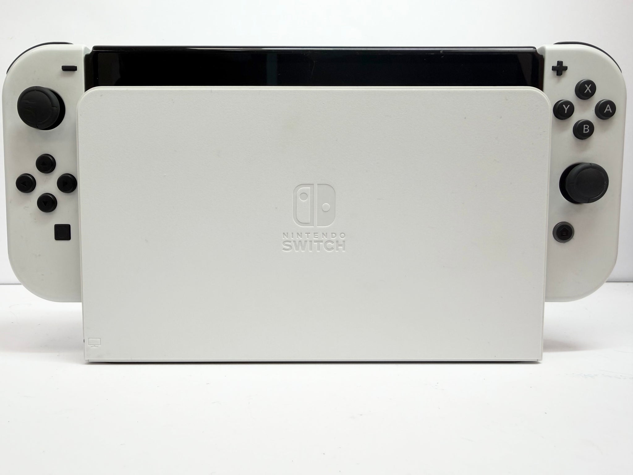 Introducing the Nintendo Switch Console OLED White, the latest addition to the Nintendo Switch family, offering an elevated gaming experience. Experience your favorite games in vibrant detail with the dazzling 7-inch OLED screen, showcasing richer colors and deeper blacks for a truly immersive visual experience. The wider adjustable stand allows for flexible viewing angles, making it perfect for sharing the action with friends or family. Stay connected and enjoy seamless online gaming with the included dock featuring a wired LAN port, guaranteeing a stable and reliable internet connection. The Nintendo Switch OLED White comes with 64 GB of internal storage, giving you ample space to store your favorite games and digital content. The enhanced audio features deliver crystal-clear sound, enhancing the immersive experience and adding a new dimension to your favorite titles. Unleash your gaming spirit and explore a vast library of games anytime, anywhere. The Nintendo Switch's versatility shines through its hybrid design, effortlessly transitioning from a handheld console to a home console, giving you the freedom to play in any environment. Embrace the portability of the Nintendo Switch and continue your gaming adventure on the go, or enjoy the immersive big-screen experience on your TV at home.