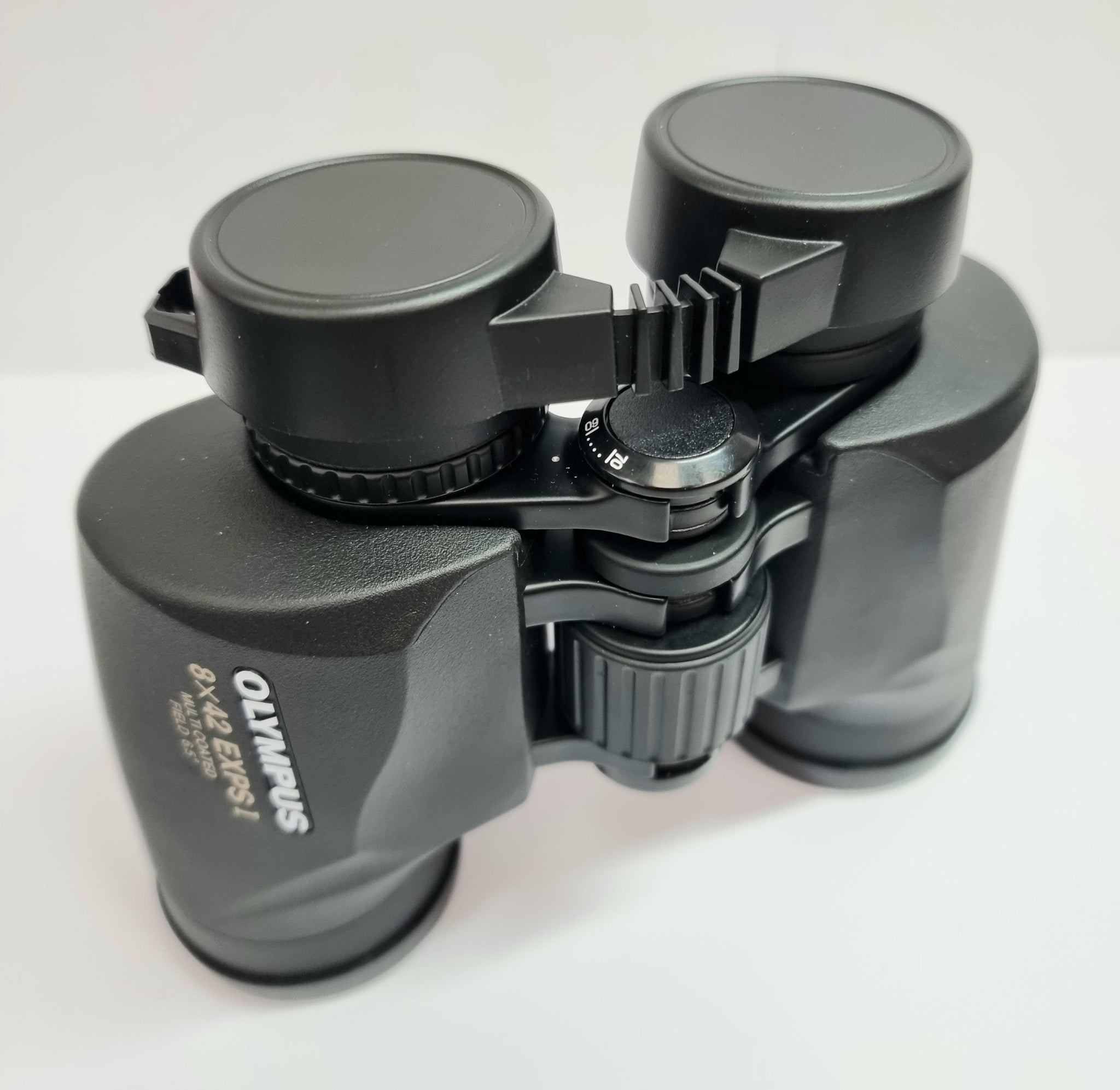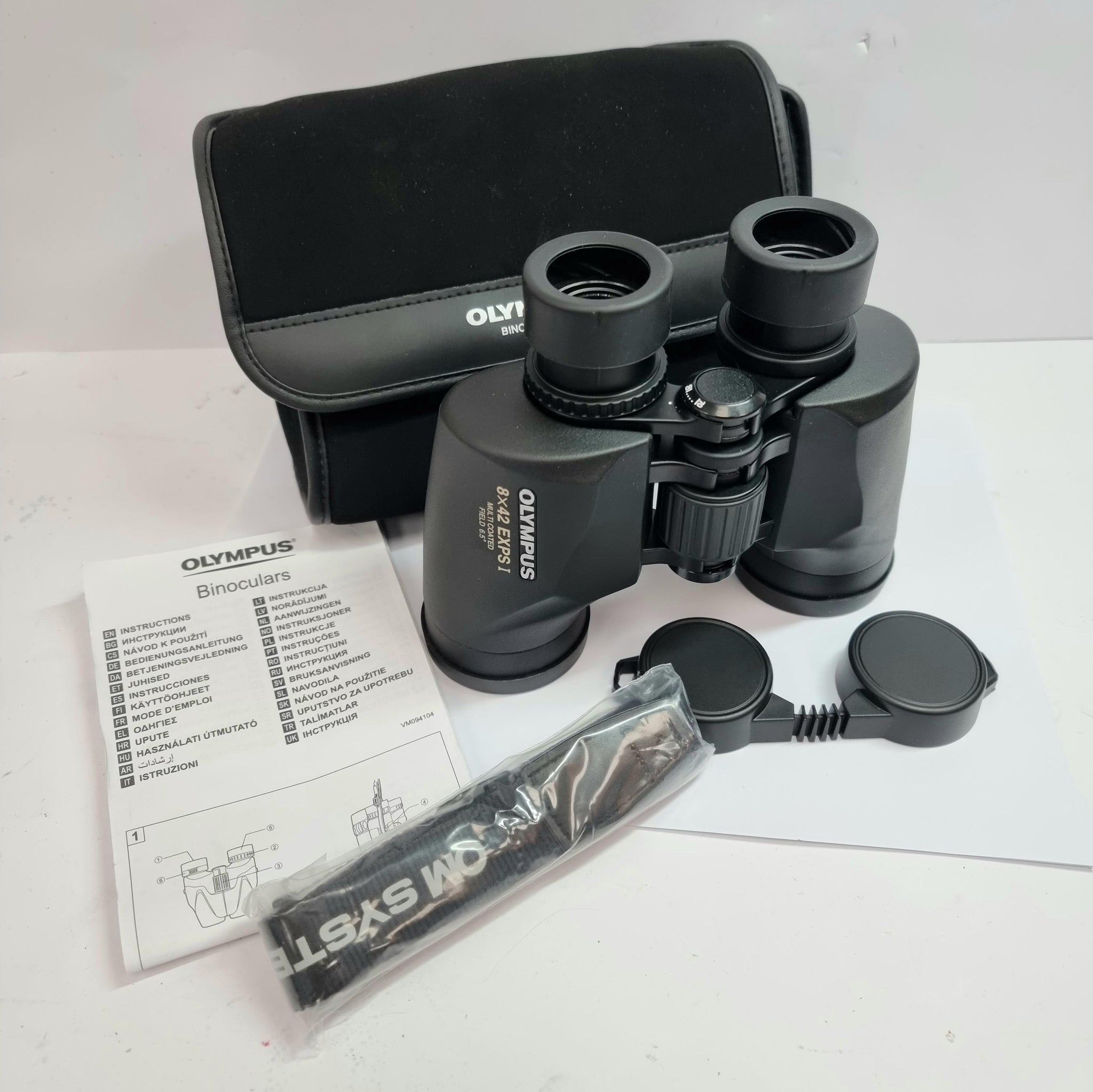 Olympus 8x42 EXPSI Binoculars with case included. Comes with case, strap, and front and back caps.