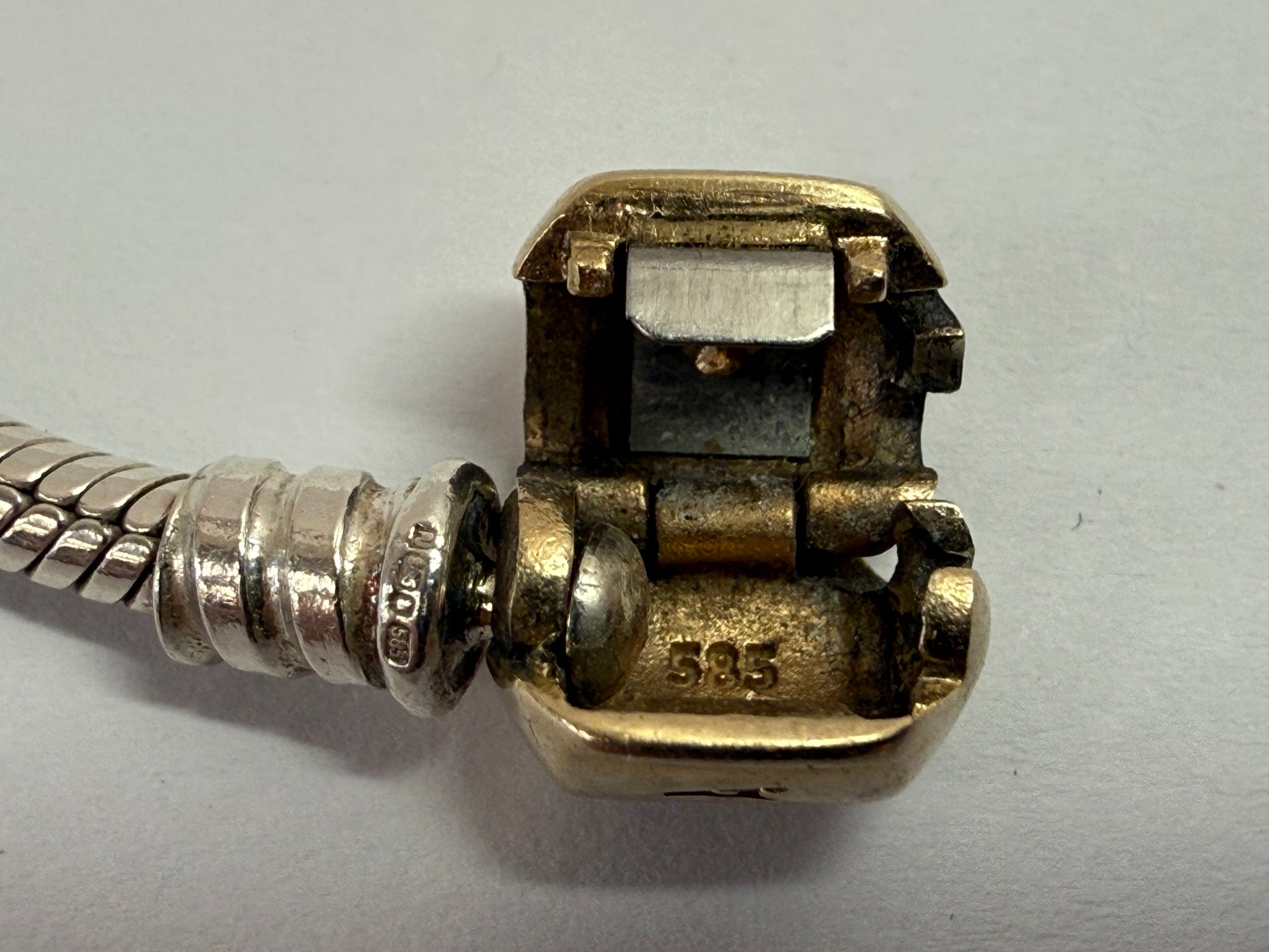 Pandora snake bracelet with 14ct gold clasp 21cm