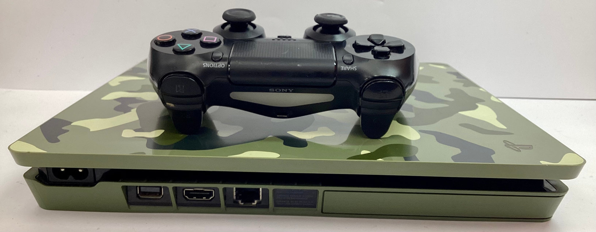 PlayStation 4 slim in Camouflage with 1TB storage, also comes with main power lead, hdmi and official black controller