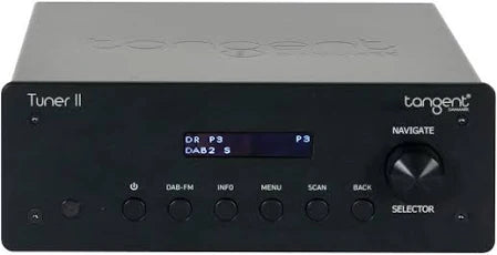Classic HI-FI on the outside - New technology on the inside Radio is not dead! It has just been resurrected with a new really good sound quality! With Tangent's new Tuner II you can receive the new DAB system without any problems (depending on where you are). The incredible digital sound that DAB+ delivers gives you lightning-fast reception of all the available DAB+ channels in your area. Of course, with Tuner II you can also receive the old analog FM signal. The clear display gives you the information you need whether you're listening to either FM or DAB+. Big sound doesn't need so much space The new Tangent Tuner II fits perfectly into Tangent's mini system. If you place it together with Ampster BT II and CD II, you get a complete small HI-FI system with surprisingly big sound. On the shelf, the Ampster BT II, CD II and Tuner II fill less than an A-4 sheet on the short side. Each part fills only 7 cm in height, so stacked it is only 21 cm. The small size of each component makes it easy to find the right position in the living room, kitchen or wherever it suits you best. One remote control for everything The remote control for the Ampster BT II also fits the Tuner II and CD II. So if you have bought all three sub-components, you actually have three identical remote controls for the installation. You can place these in strategic places in the room so that you will never be far from the remote control. Or you can choose to use only one remote control and put the other two in a drawer and take out in case of emergency.