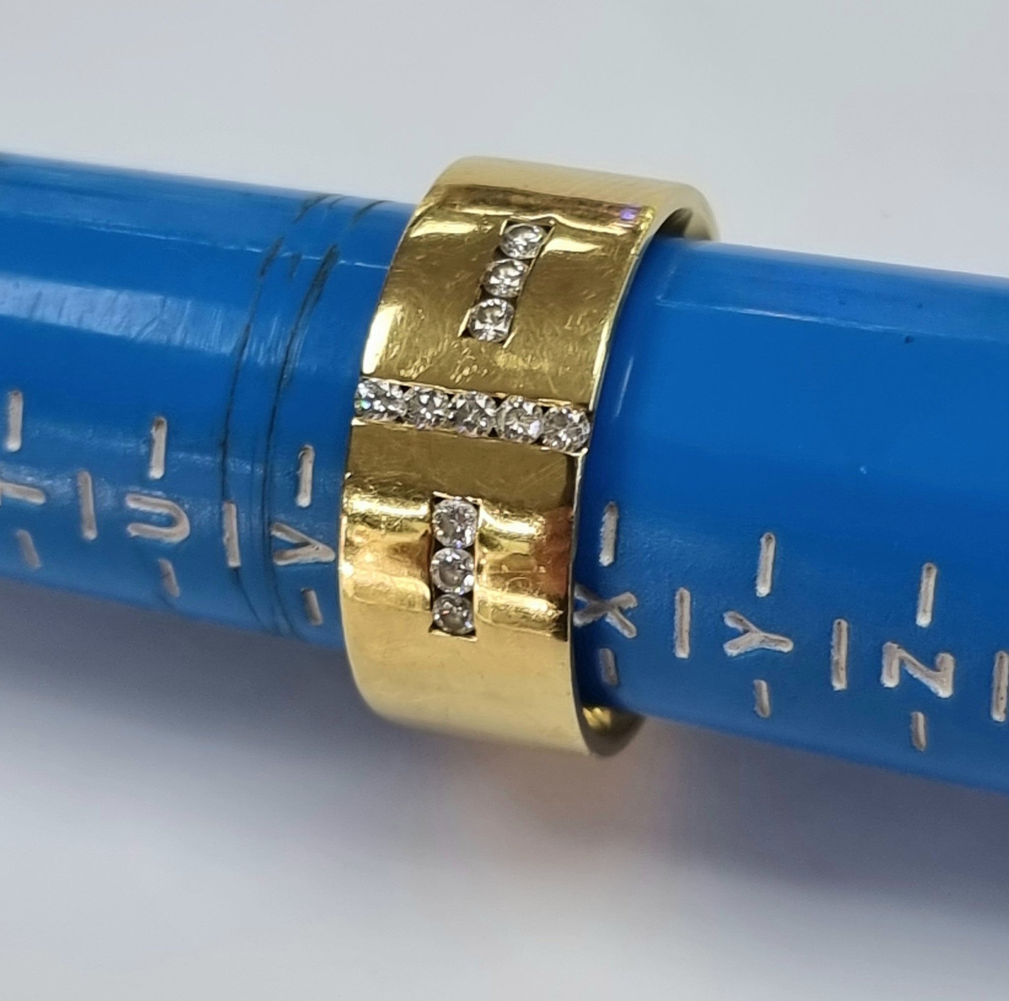 A stunning ring in a size "W" with 11 small diamonds crossing .** It weighs 22 .06 grams and is 10mm wide
