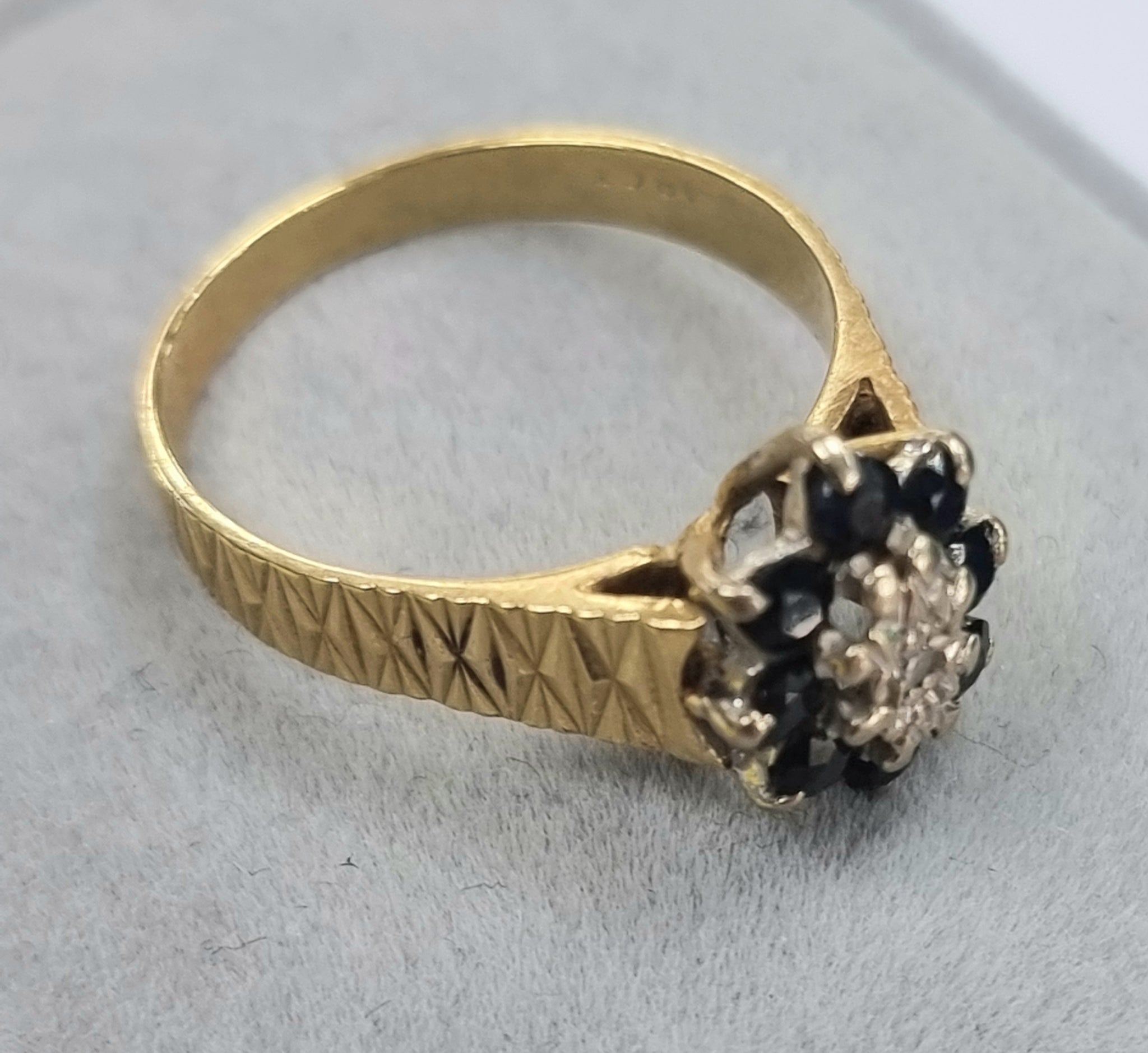18ct Gold Diamond Sapphire Ring Size "M"