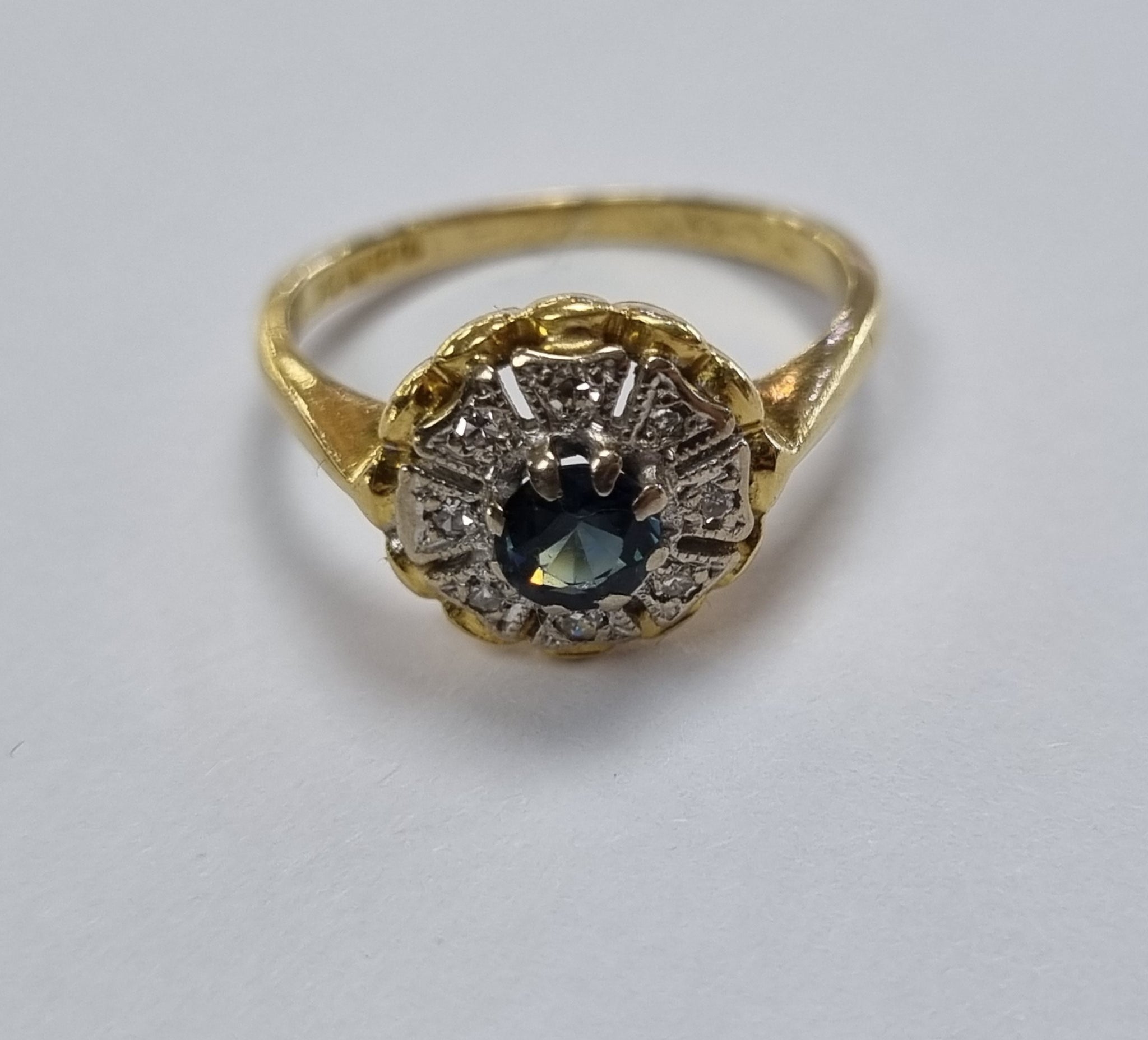 18ct Gold Ring Diamond & Sapphire Size "L1/2"