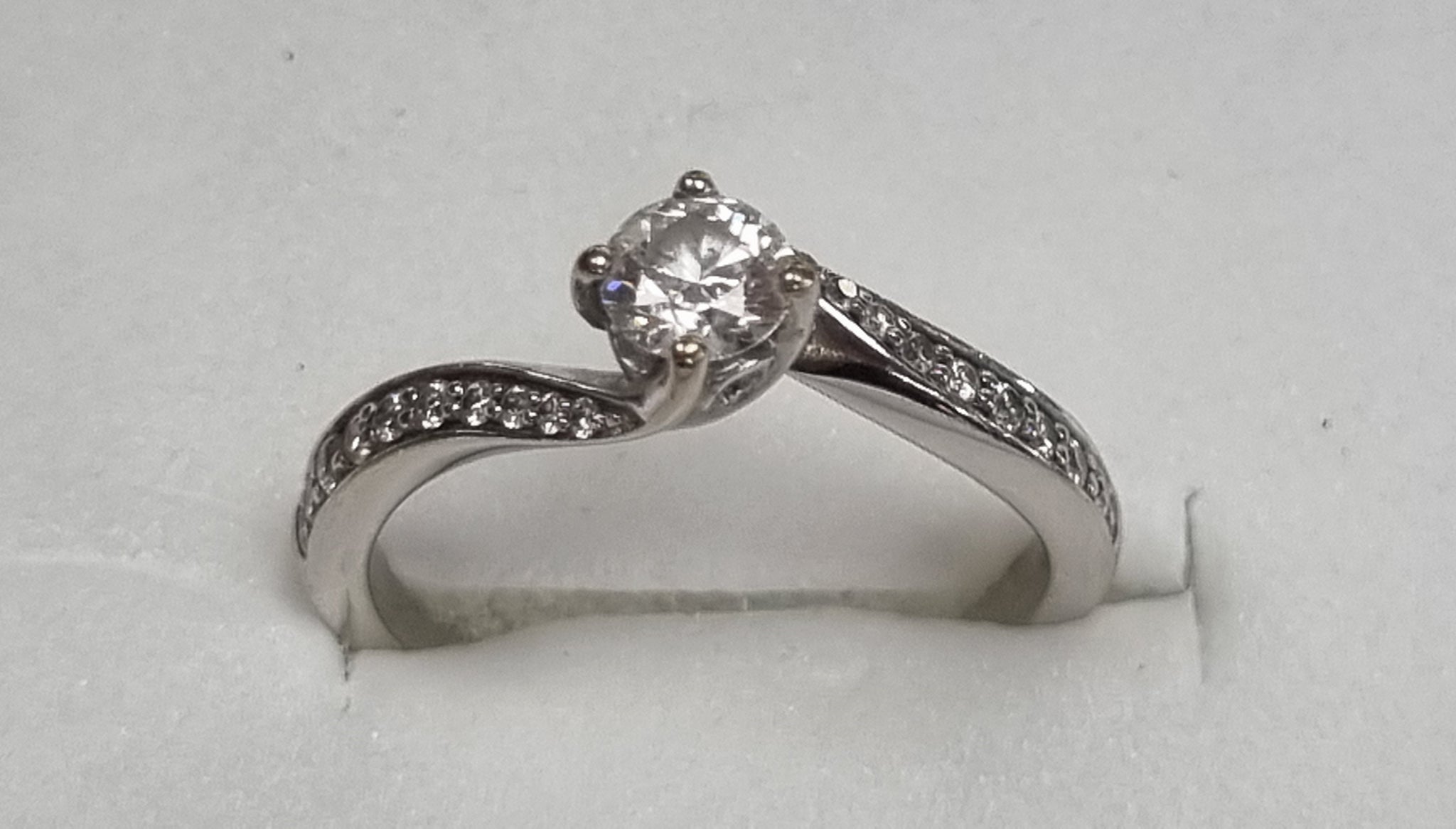 18ct white gold ring, this weighs 3.16grams in total. Diamond- 0.34ct. The condition is very good. Size L