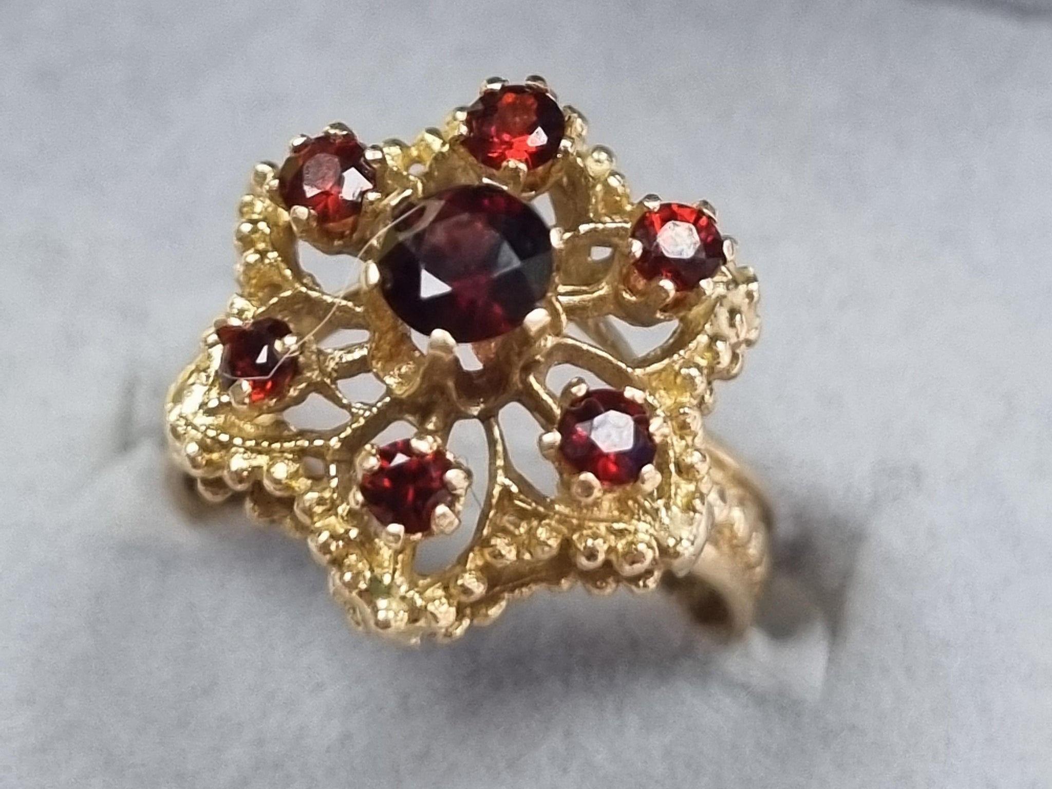 9ct Gold Flower style Ring with Red Stones Size O