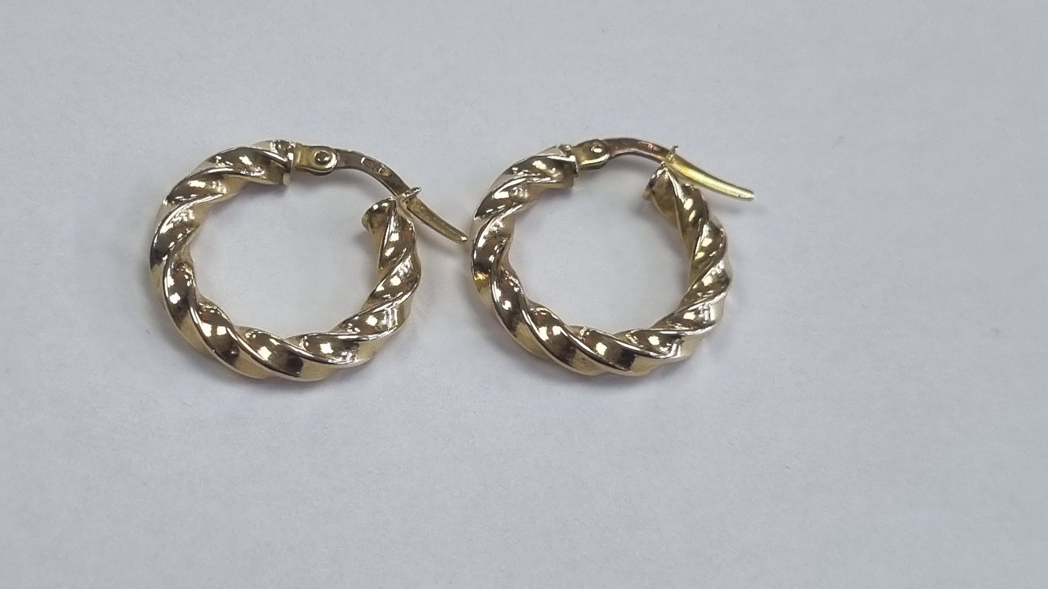 9ct gold earrings hooped. These weigh 1.37grams and are in good condition approx .1.8cm in width.