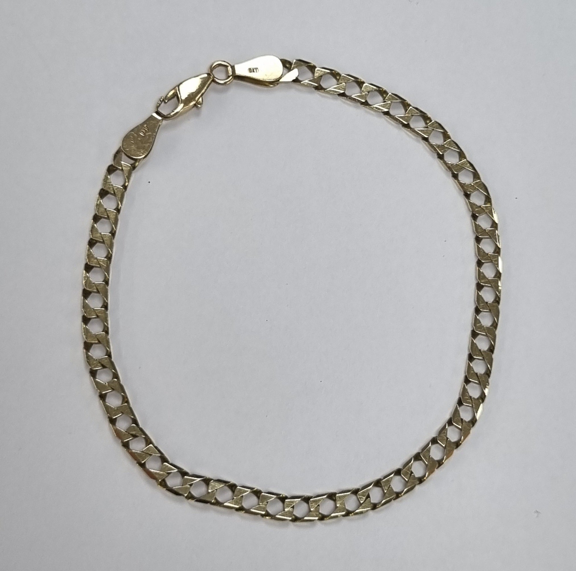 9ct gold square link curb bracelet. This is a thin bracelet, this is in very good condition. Weighs 4.38grams in total. 7.8" in length.