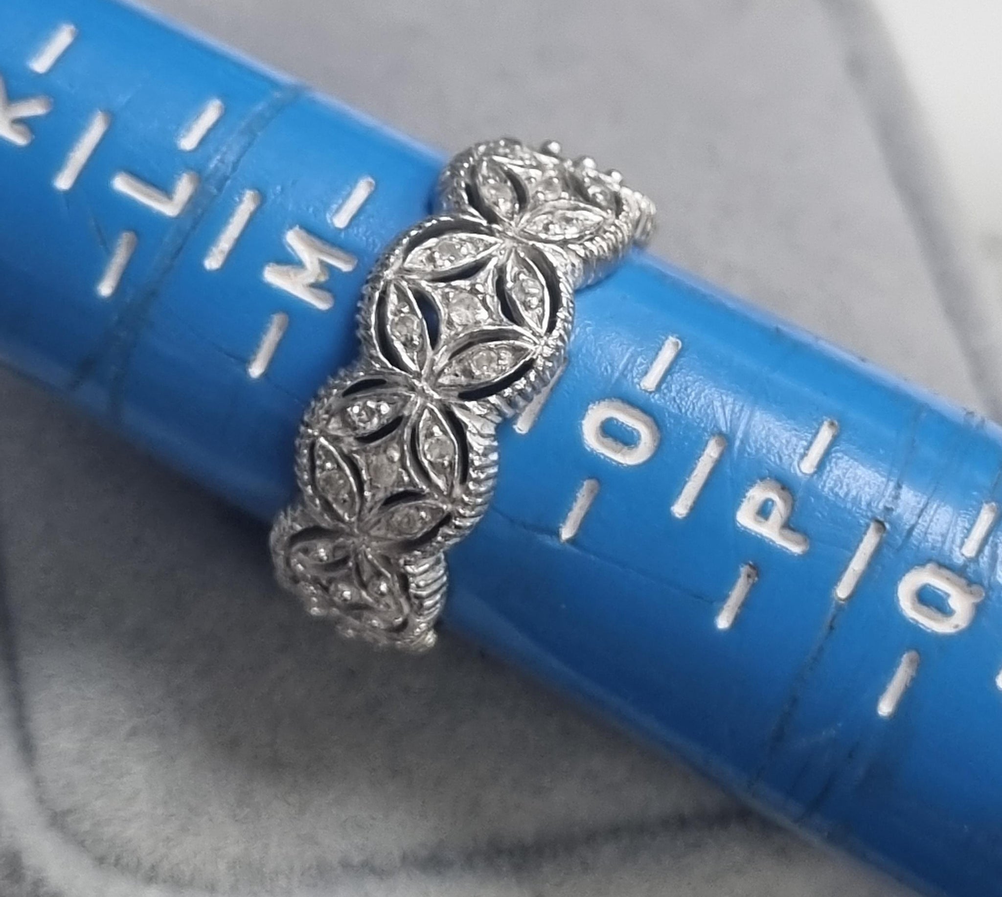 9ct White Gold Diamond ring with stones 3/4 of way round in a size "N" weighs 4.82 grams 0.10ct ************************ will be posted immediately
