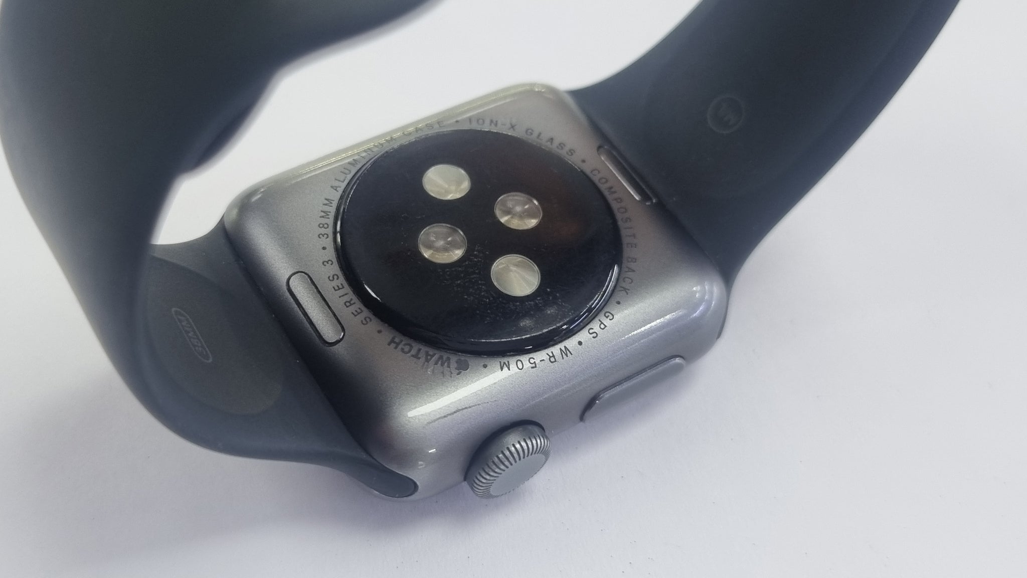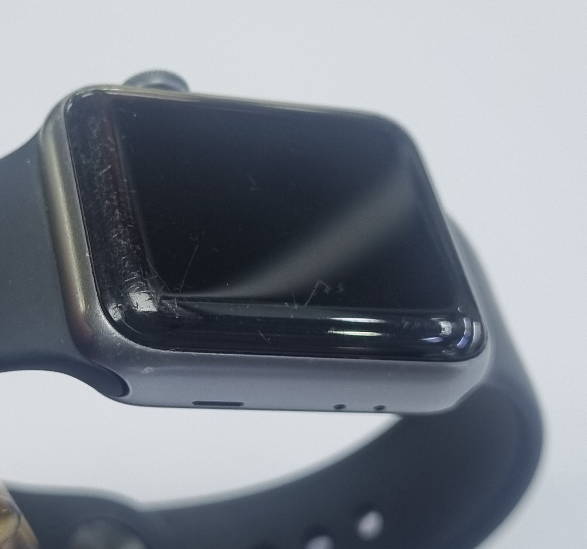 Apple watch series 3. 38mm, wifi. Space grey. Silicone strap black. This has only light cosmetic marks from general use which do not effect the performance. This comes with charging cable ******************* Will be posted immediately
