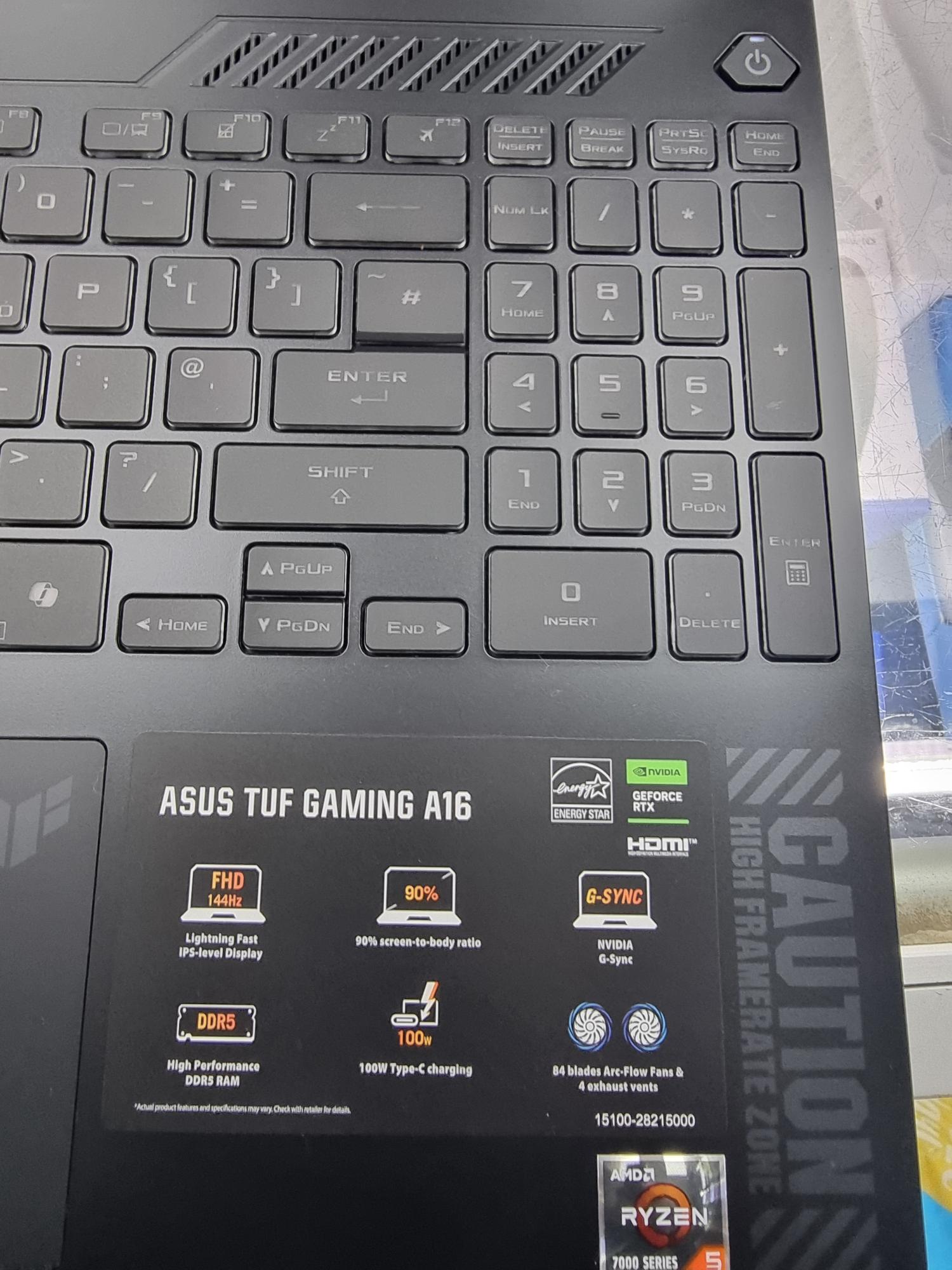 ASUS TUF A16 Gaming Laptop 15.6" AMD Ryzen 5, RTX 4050, 512GB SSD, 16GB RAM This is boxed with charger fully reset small mark to lid