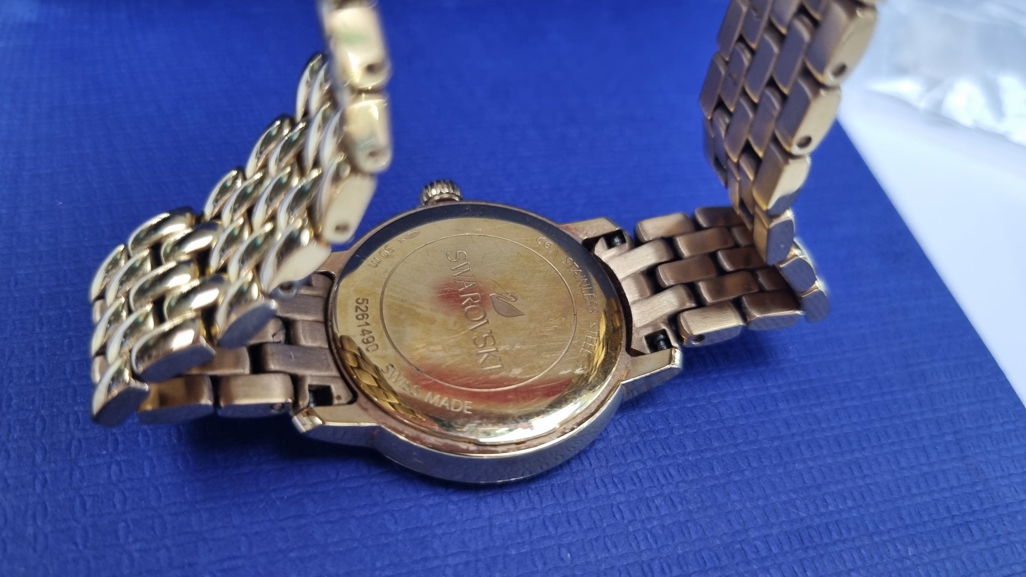 This ladies watch by swarovski is in excellent condition with original box, 4 spare links and manual. **********************Elegant yet fashionable, this petite watch with an on-trend retro look is beautifully crafted with sparkling crystals and a rose gold-tone coated bracelet. With a white silver-tone sunray dial and rose gold-tone coated case embellished with 54 clear crystals, this is a very feminine accessory with a stunning sparkle. Case - 29 mm, water resistant up to 50 m, Swiss made