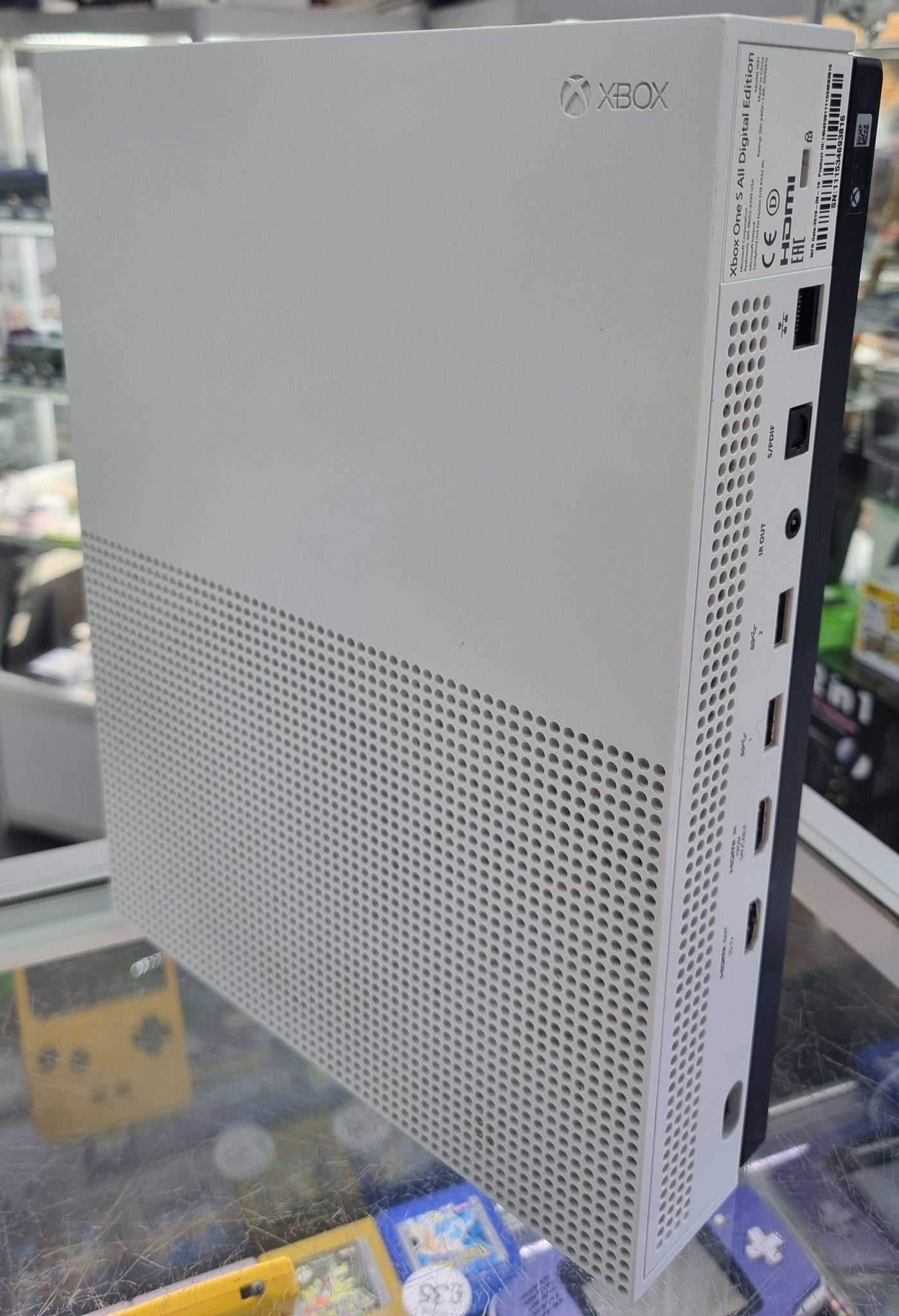 Xbox one S console 1tb storage, all digital edition. Comes unboxed with hdmi lead, power lead and wired controller. Has very minor cosmetic marks from use overtime. Overall good. Fully tested amd reset in store ready to play. Online required.