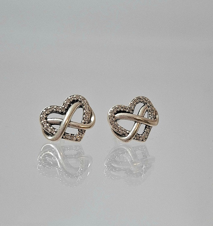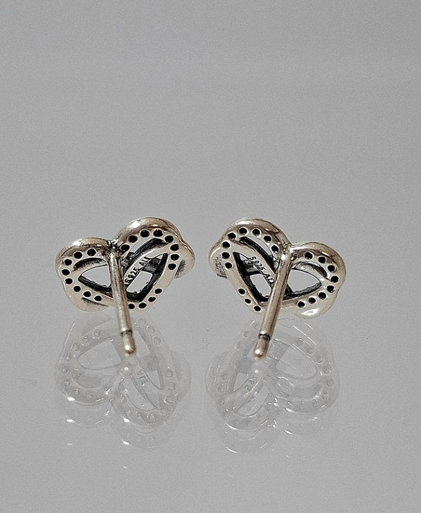 Representing the eternal love that binds family together, the Sparkling Infinity Heart Stud Earrings make a meaningful gift for your nearest and dearest. Each sterling silver earring features an openwork heart motif with sparkling stones along the edge and an asymmetrical infinity symbol entwining around the heart. These earrings are sold as a pair. Wear them to show your appreciation for a loved one or gift them to someone close to your heart.