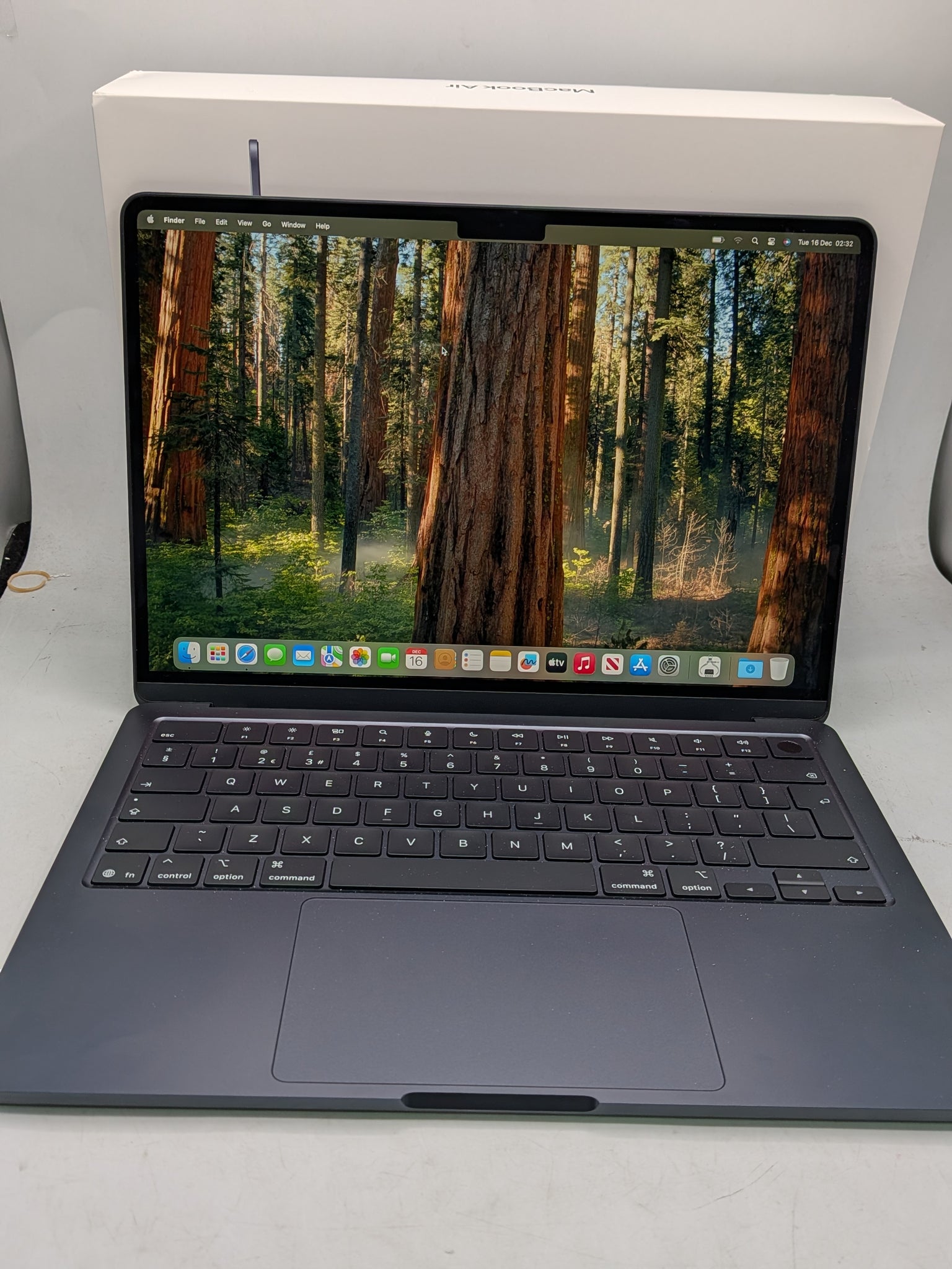 MacBook Air is the ultimate blend of performance and portability, delivering incredible speed, all-day battery life, and a stunning design in a laptop that’s effortlessly thin and light. Powered by the M4 chip, it handles everything from everyday tasks to creative projects with ease – all in a fanless, whisper-quiet design. Available in Sky Blue, Silver, Midnight or Starlight, MacBook Air not only performs beautifully but looks stunning too. Whether you prefer a classic, professional look or something more bold and modern, there’s a colour to match your style. Brilliant display, unmatched clarity The Liquid Retina display offers breathtaking visuals with vibrant colours, deep contrast, and razor-sharp text. Whether you’re working, streaming, or creating, the 13-inch or 15-inch display makes every detail pop with incredible clarity. Blazing-fast storage and all-day battery life With 256GB, 512GB, 1TB or 2TB of superfast SSD storage and 16GB, 24GB or 32GB of RAM, apps open instantly, files load in a flash, and multitasking feels seamless. And with a battery that lasts for hours, you can work, create, or unwind without constantly reaching for a charger. Versatile connectivity, maximum productivity Designed to fit effortlessly into your workflow, the MacBook Air features multiple Thunderbolt / USB 4 ports, giving you the flexibility to connect displays, accessories, and high-speed peripherals. Whether at home, in the office, or on the go, you’ll always be ready to plug in and get to work. Lightweight. Powerful. Ready for anything. With its ultra-light, durable design, MacBook Air is made to go anywhere while delivering the performance you need. macOS ensures a smooth, intuitive experience with powerful built-in apps, enhanced security, and seamless integration with all your Apple devices. in near new condition with a cycle count of only 2 ! m4/16gb/256gb