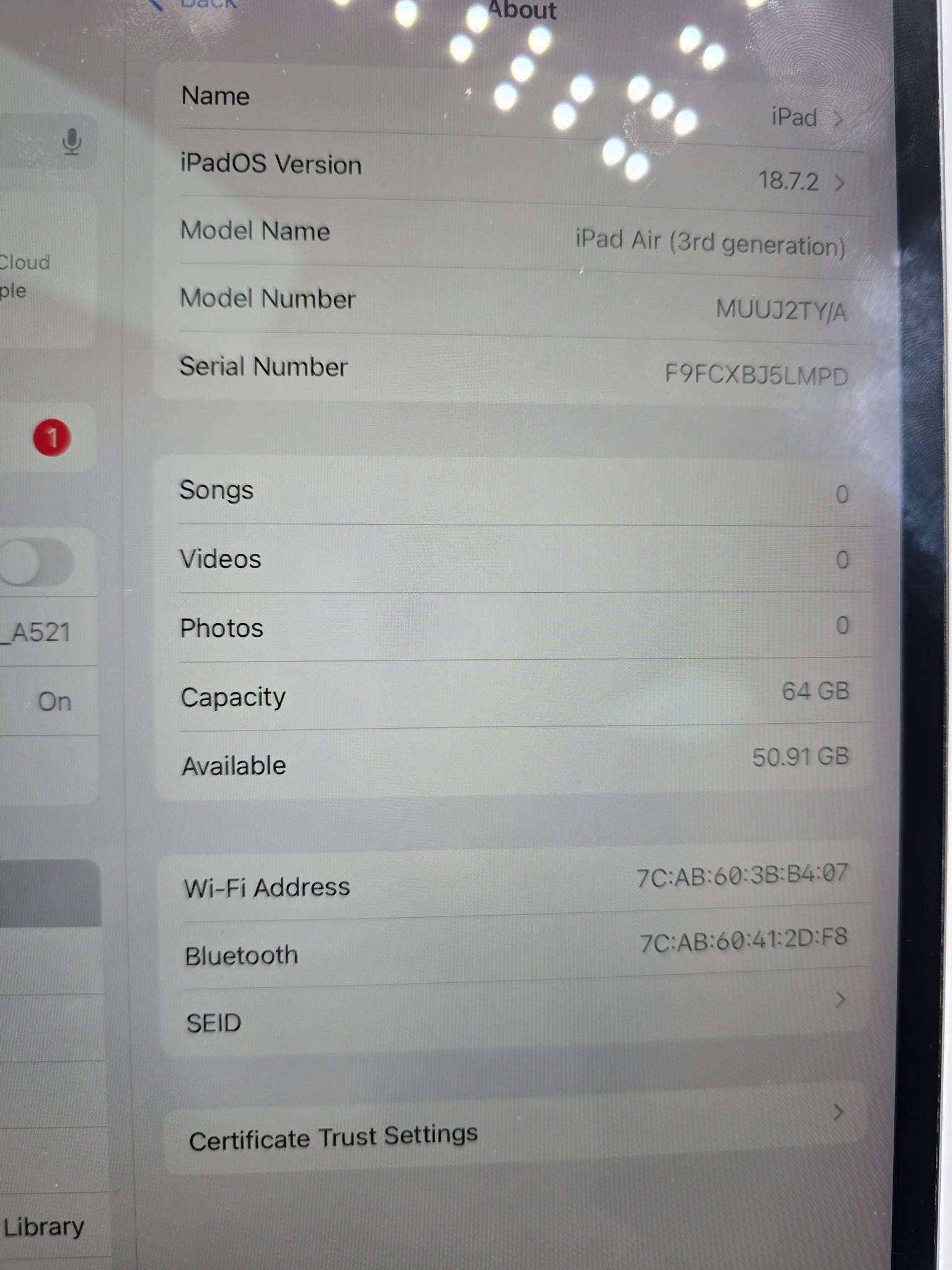 ipad air 3rd gen 64gb grey unboxed, scuffing on back