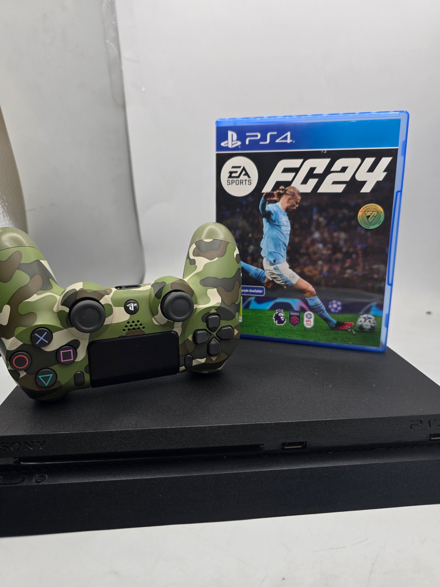 Playstation 4 Slim Console, with controller and game fc24