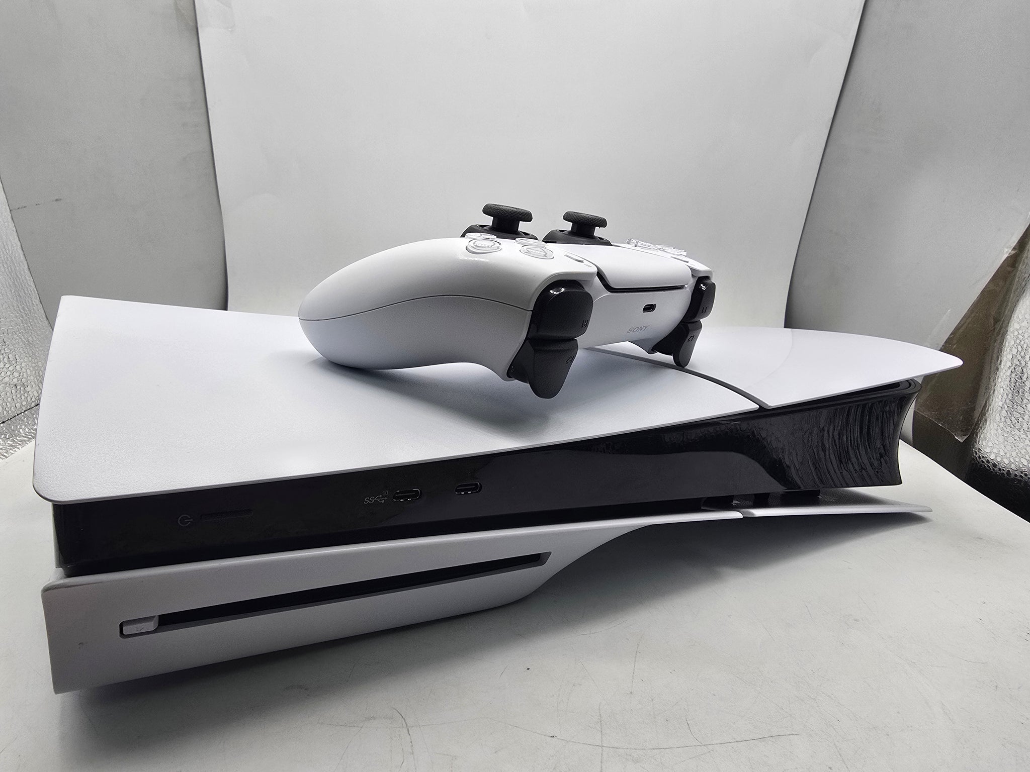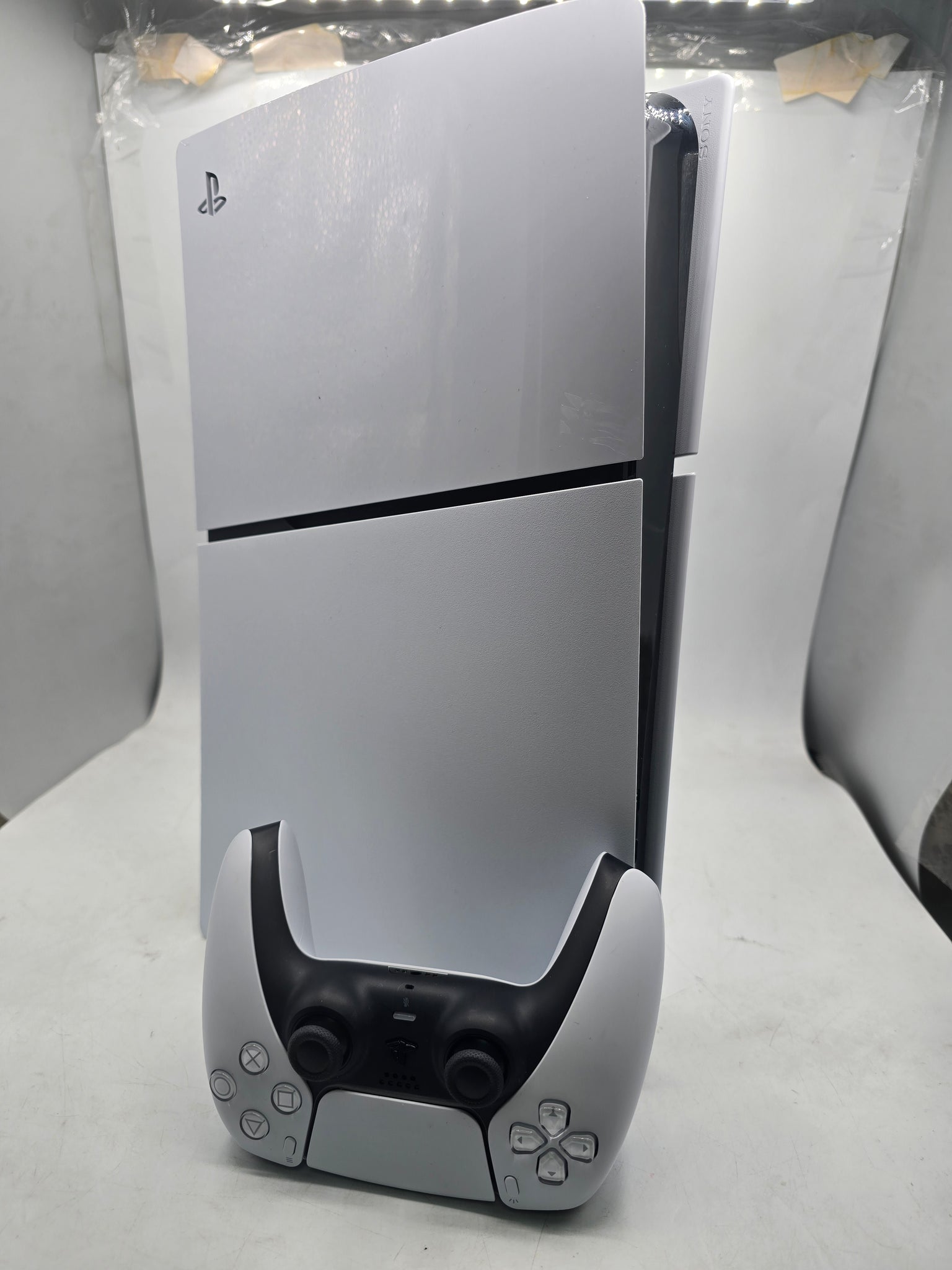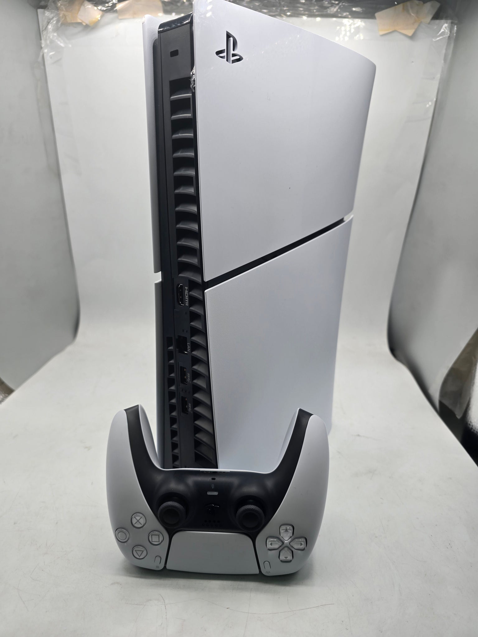 Prepare to enter a new realm of gaming with the PlayStation 5 Console Disc Slim. This innovative console ushers in an era of groundbreaking gaming experiences that redefine what's possible. At its heart lies a custom-designed CPU, GPU, and ultra-fast SSD with integrated I/O technology, delivering speeds previously unimaginable, eradicating those frustrating loading screens and plunging you straight into the action. Witness breathtaking visuals like never before, as the powerful hardware renders games with incredible fidelity, bringing virtual worlds to life with stunning detail. Experience a level of immersion you've never felt with support for groundbreaking technologies like haptic feedback, adaptive triggers, and 3D Audio. Feel the subtle nuances of every action, from the weight of a weapon to the rumble of a vehicle, and be enveloped in soundscapes that surround you with realistic depth and precision. Explore a world of immersive gaming experiences with an all-new generation of PlayStation exclusives that push the boundaries of storytelling, gameplay, and visual fidelity. The PlayStation 5 Console Disc Slim allows you to enjoy an extensive library of PS4 games, providing a vast array of options for gamers of all preferences. Immerse yourself in a world of exhilarating adventures, thought-provoking narratives, and captivating gameplay, all brought to life with the power of the PS5 Console Disc Slim. Though a vertical stand is not included with the console, it can be purchased separately, offering a choice for your ideal console setup. unboxed, good condition one controller