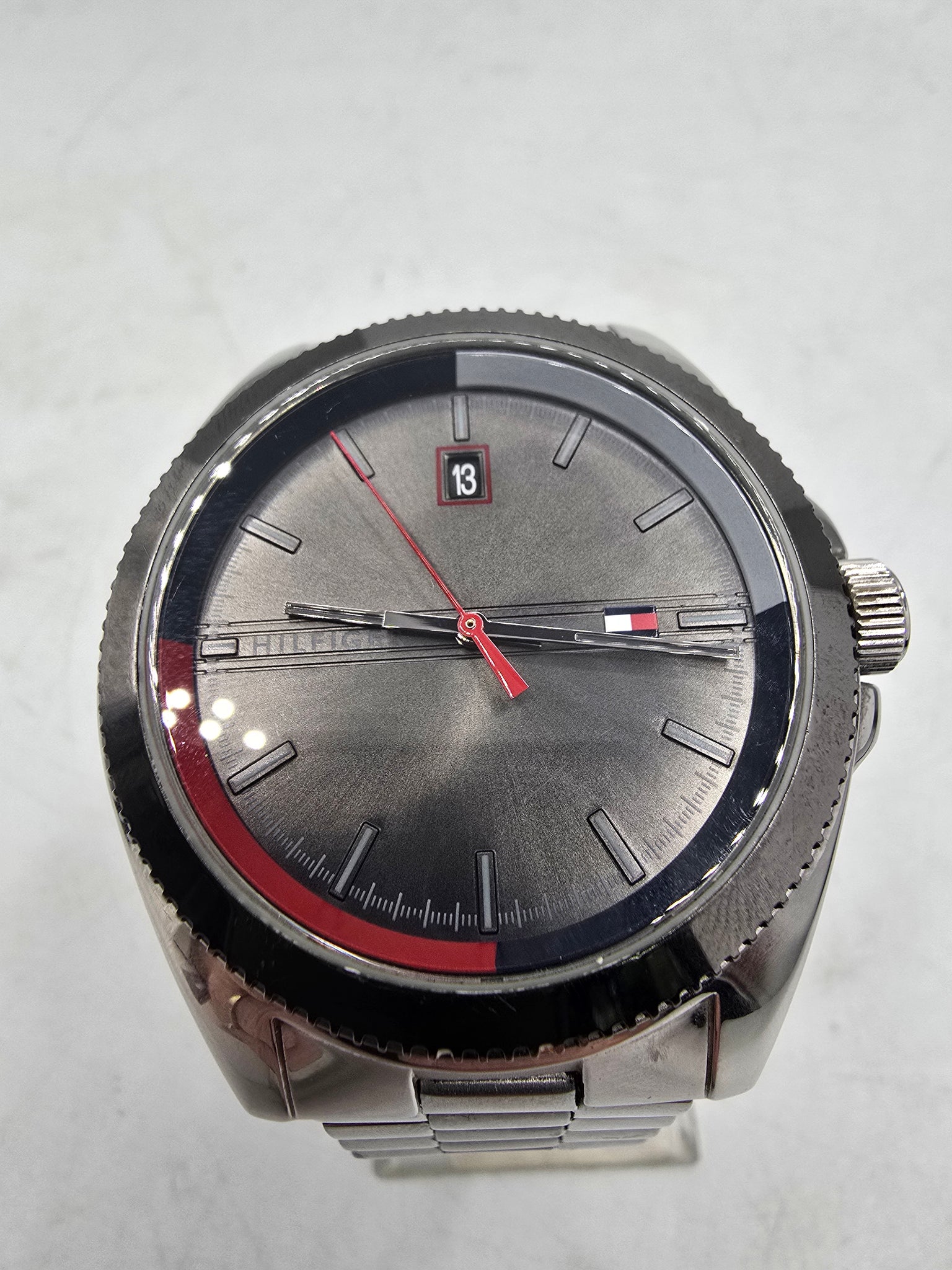 tommy hilfiger grey dial watch unboxed, good condition metal strap