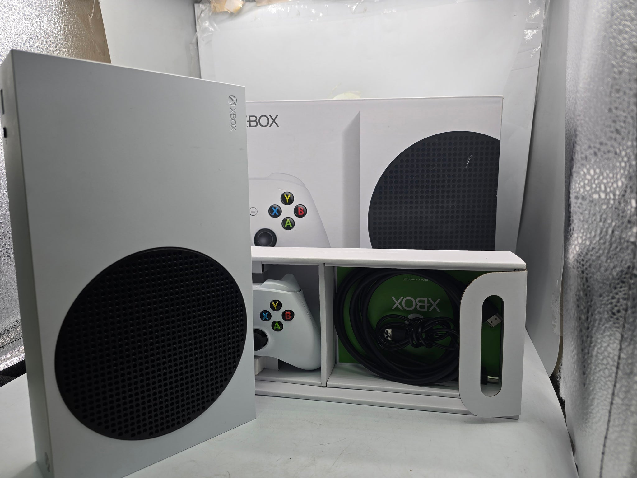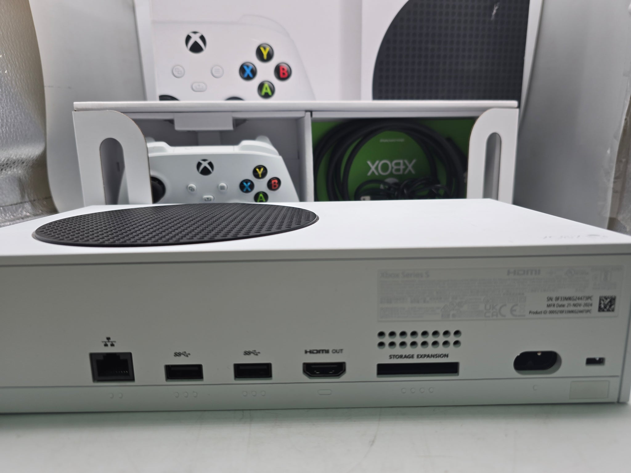 Introducing the Xbox Series S, the smallest, sleekest Xbox console ever. Experience the speed and performance of a next-gen all-digital console. Get started with an instant library of 100+ high-quality games, including all-new Xbox Game Studios titles. Seamlessly move between multiple games in a flash with Quick Resume. At the heart of Series S is the Xbox Velocity Architecture, which pairs a custom-SSD with integrated software for faster, streamlined gameplay. Amazing features in an all-digital console. Minimise load times with a custom-built 512GB NVMe SSD and seamlessly move between multiple recently played games in a flash with Quick Resume. Play thousands of games from four generations of Xbox, including Xbox One, Xbox 360, and Original Xbox titles with backward compatibility. boxed, good condition