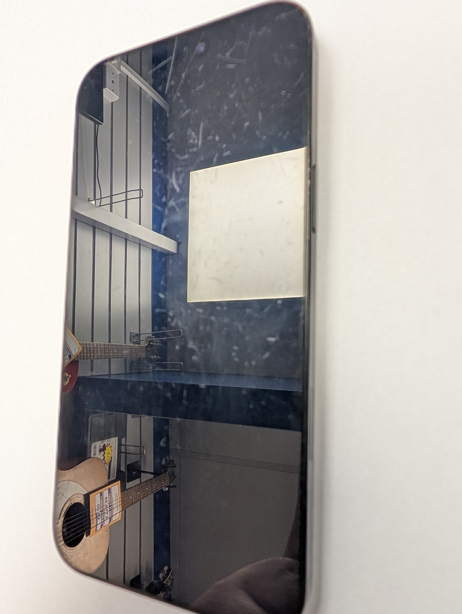 Heavy scratches on front of screen.. With some damage to the casing on the side and the rear. 100% battery with just over 100 on cycle count.