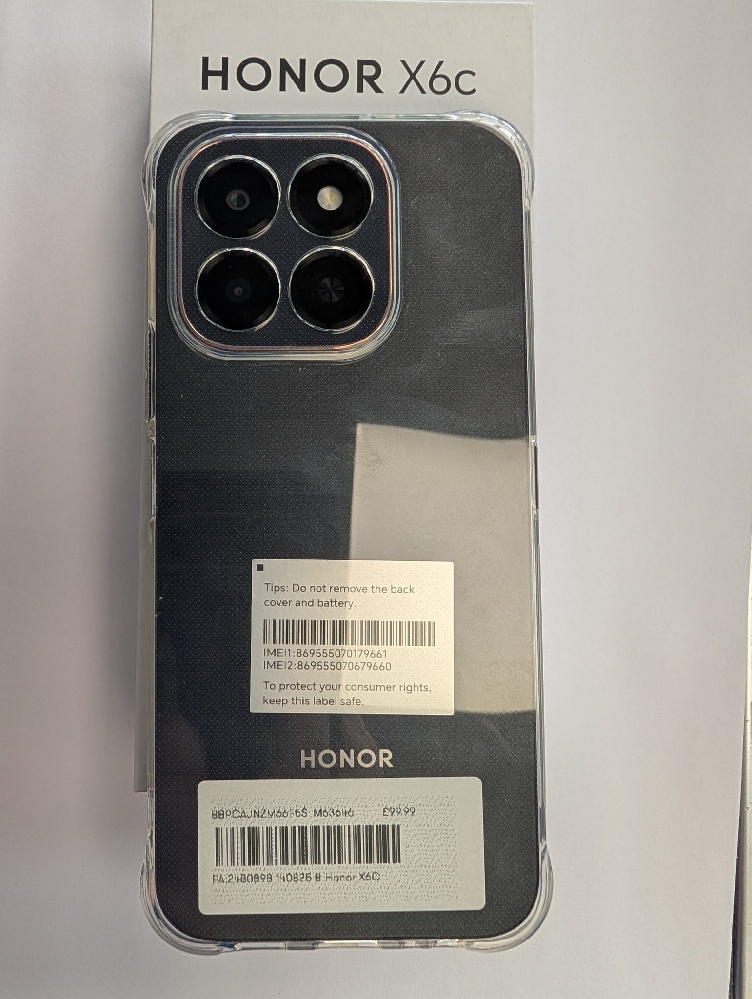 Honor X6C - Outstanding Value For Money. Big Display The 6.61-Inch Honor Hd+ Display Brings Websites, Movies And Streaming To Life, While The Impressive 120Hz Screen Refresh Rate Ensures A Smoother Scrolling Experience And Improved Visual Animations. Ideal For Watching Netflix In Bed Or Having A Clear Map To Guide You While Driving. Built To Last, The Honor X6C Is Also Sgs Certified For Drop Resistance And Has An Ip63 Rating For Water And Dust Protection.. Long Battery Life The Honor X6C Features A Large 5,300Ma Battery Supporting Up To 21 Hours Of Online Browsing With A Single Charge. Thanks To Honor 35W Supercharge, You Can Soon Have It Charged Up Again When The Battery Does Finally Drain. Ai-Enhanced Cameras The 50Mp Rear Dual Camera Makes Easy Work Of Capture Life Moments In Vivid Detail, Day And Night. There'S Also A 5Mp Camera At The Front For Selfies And Video Chats. We Also Love The Handy Ai Button For Quick Access To Google Lens And An Ai Eraser For Touching Up Your Photos. You'Ve Got The Power The Mediatek Helio G81 Ultra Octa-Core Processor Provides A Faster, Intelligent Performance With Less Power Consumption. It'S Also Backed Up With 12Gb Ram, So You Know Everything Happens Fast And Smooth. The Honor X6C Also Features 128Gb Of Internal Memory For All Your Music, Videos, Photos And More. Camera: N Depth: 163.59 Mm Honor X6C Offers Ai Tools Like Google Lens, Ai Eraser, And Translation, Plus A 50Mp Dual Camera And Magicos 9.0 For A Smart, Seamless Experience. Honor X6C?S 6.61" 120Hz Display Offers Smooth Visuals And 1010 Nits Brightness, With Eye-Care Modes To Reduce Strain During Long Use. Honor X6C?S 5300Mah Battery Offers Up To 21 Hrs Browsing, Fast 35W Charging, 4-Year Durability, And Ultra Power-Saving Mode For Lasting Performance. Honor X6C Offers Sgs-Certified Drop Resistance, Ip63 Water/Dust Protection, 12Gb Ram, And 128Gb Storage For Durability And Smooth Performance. Front Facing Camera: N Height: 8.39 Mm Main Camera: N Network: Sim Free Pay-As-You-Go Mobiles Style: All Sim Type: Nano Width: 75.6 Mm