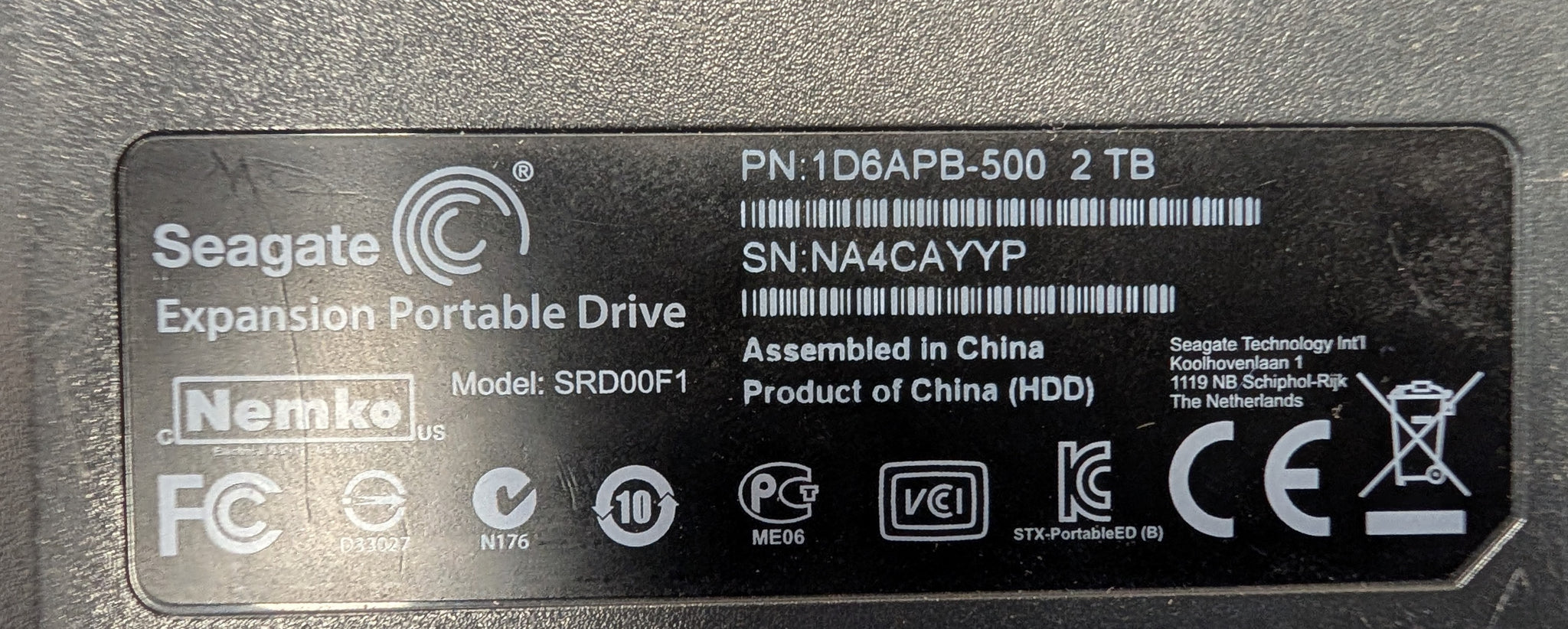 Seagate Backup Slim SRD00F1 2TB Portable USB 3.0