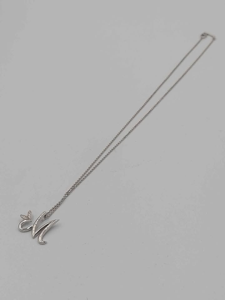 (18K Hallmarked&Tested), Boodles White Gold Necklace With M Pendant, 4.5G, 18" In Length
